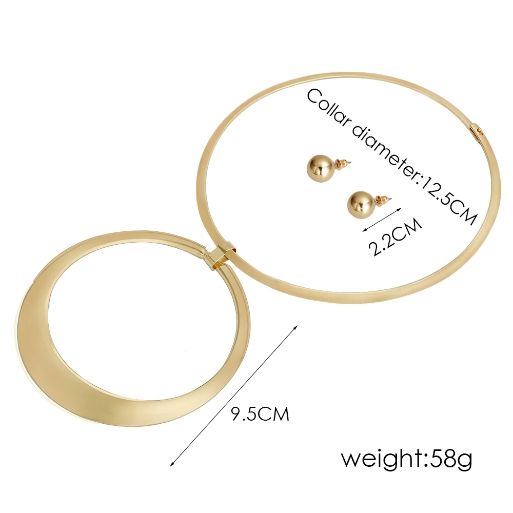 Boho Punk Round Circle Jewelry Sets Gold Color Statement Choker Necklace Earrings African Women Hiphop Party Gifts