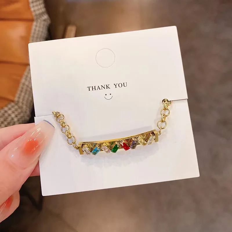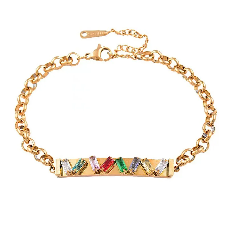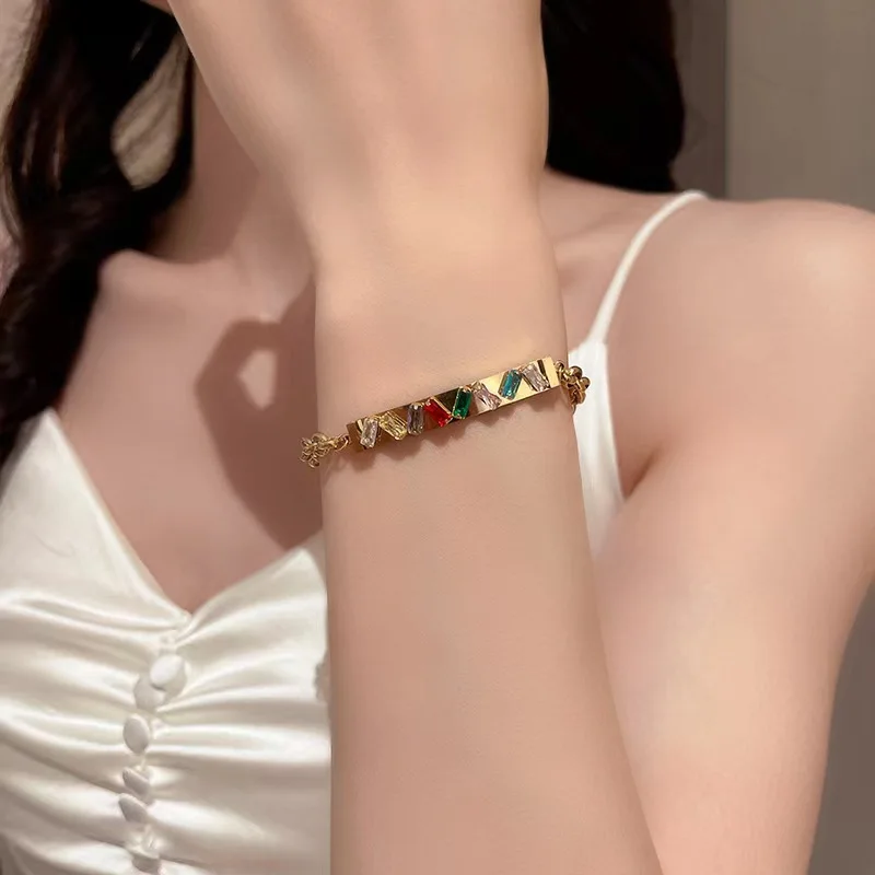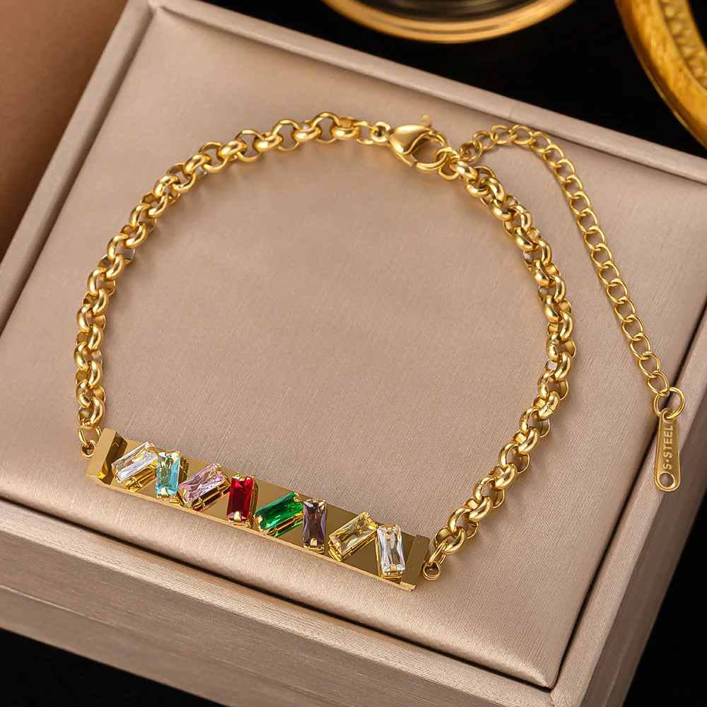585 Gold Jewelry-316L Stainless Steel Gold Color Chain Colorful Zirconia Rhinestone Bangle & Bracelet for Women Bohemian Luxury Jewelry