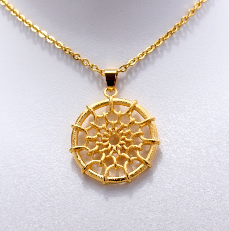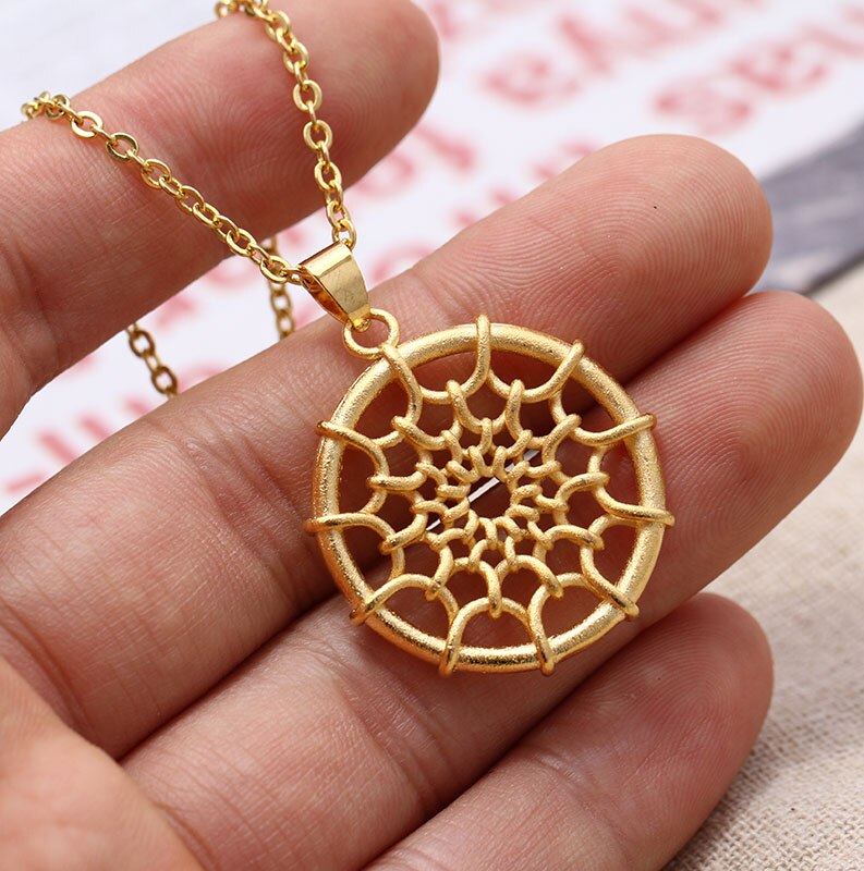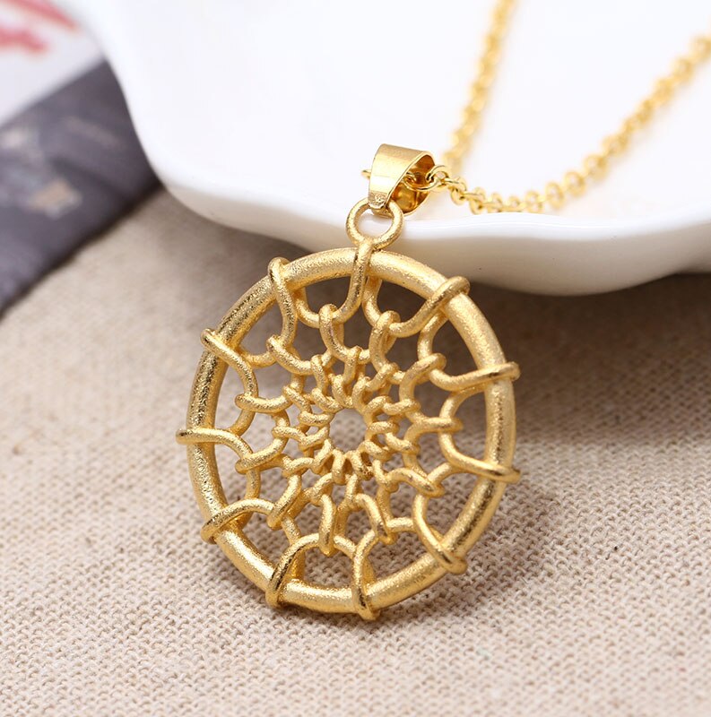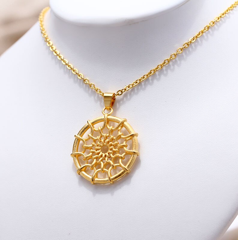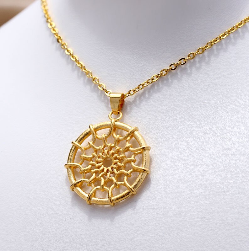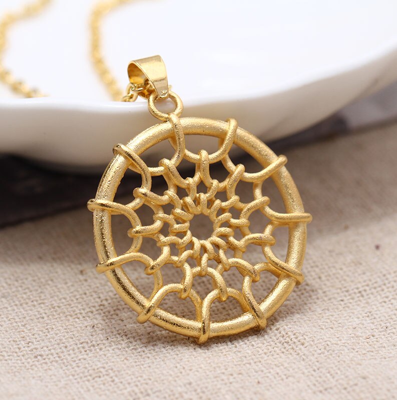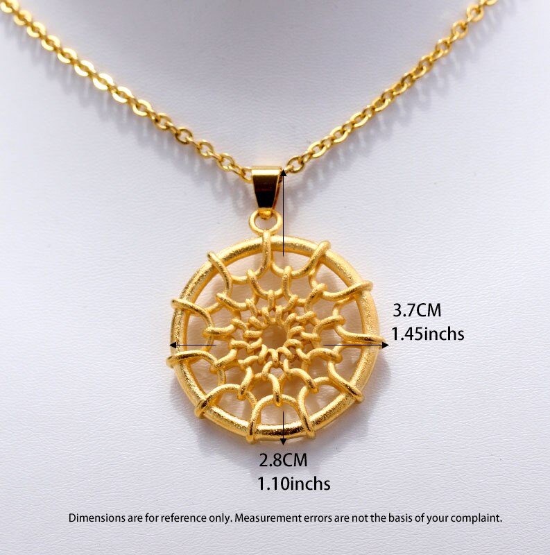 Afraic Jewelry- Gold Color Couples Round handmade mesh Pendant Wedding Necklace for Women Bride Man Girls,Thin chain Festive Jewelry Gift