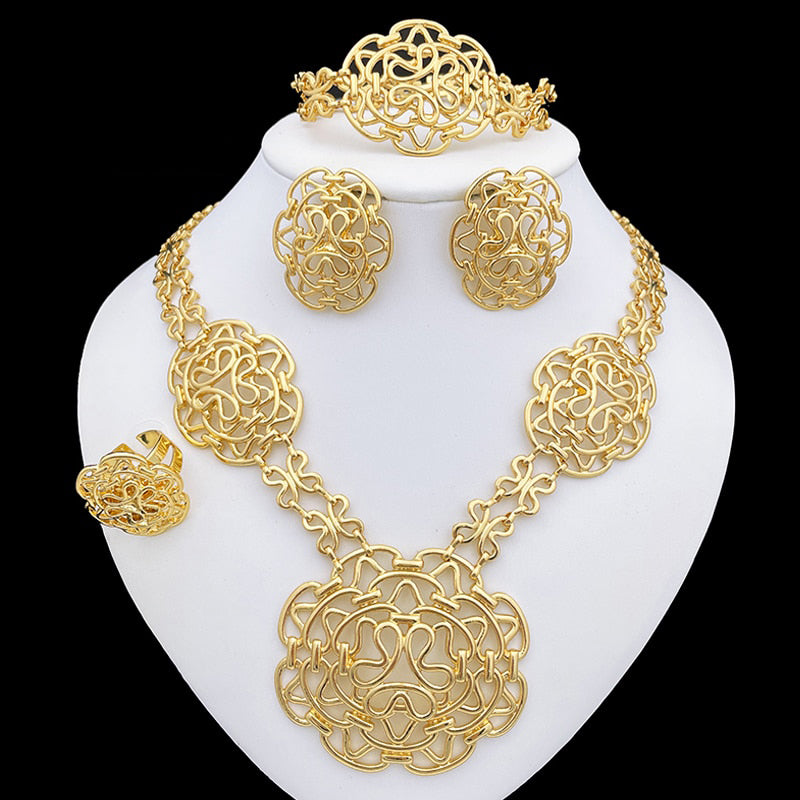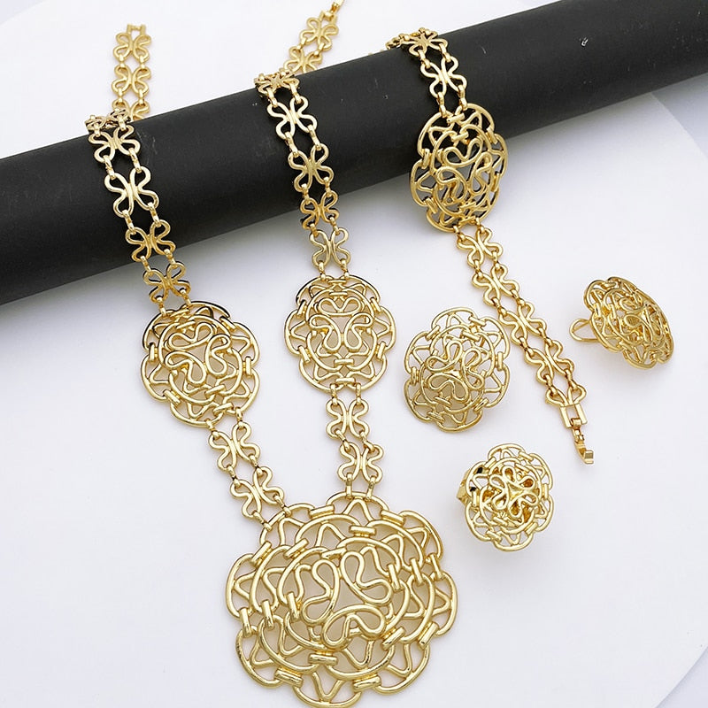 keyword: Gold Color Dubai Jewelry Sets Fashion Jewelry Necklace And Earrings For Women ensembles de bijoux italien