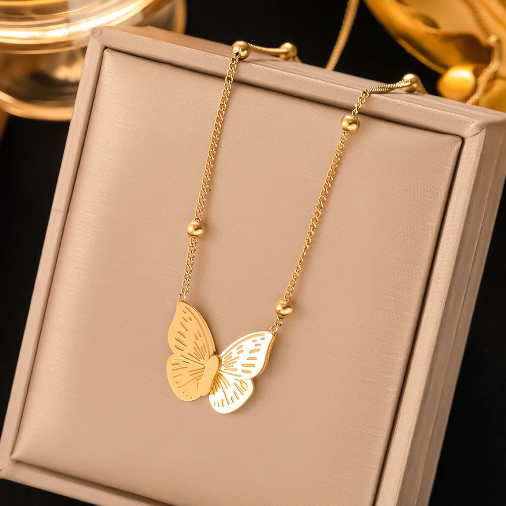 585 Gold Jewelry-316L Stainless Steel Gold Color Elegant Charm Butterfly Pendant Necklace EarringsFor Women Girls Party Jewelry Set Bohemian