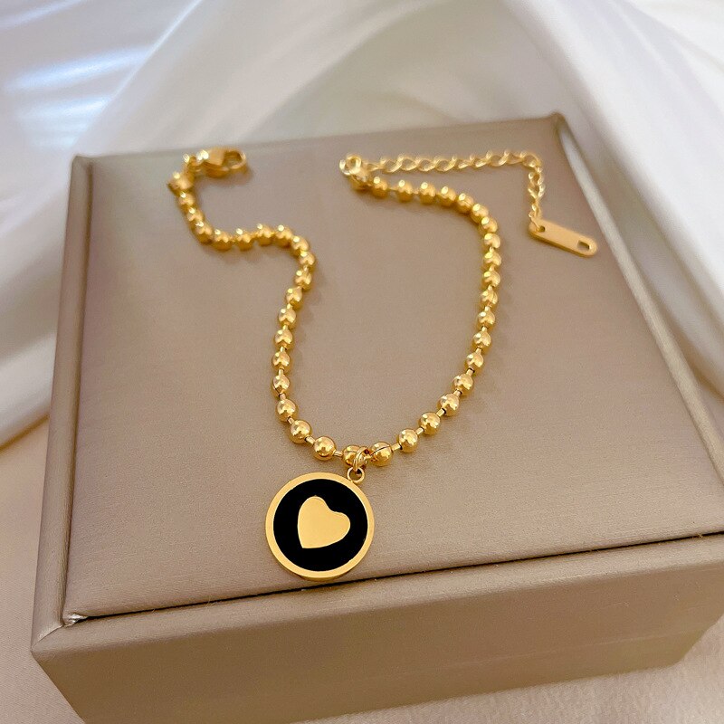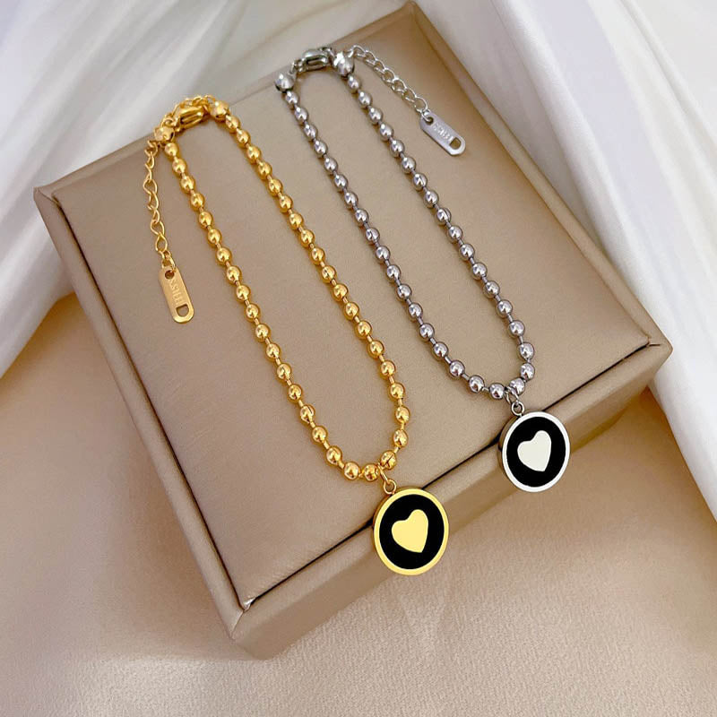 585 Gold Jewelry-316L Stainless Steel Gold Color Elegant Simple Heart Shaped Metal Bracelet Women 2023 New Fashion Exquisite Hand Jewelry