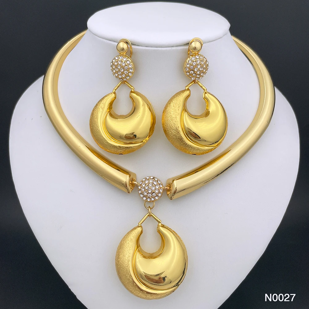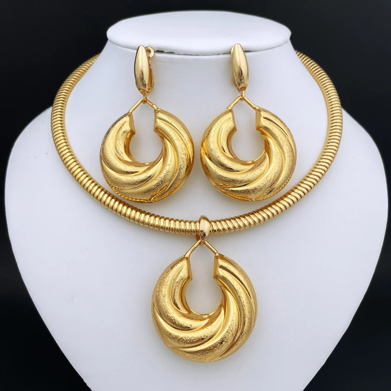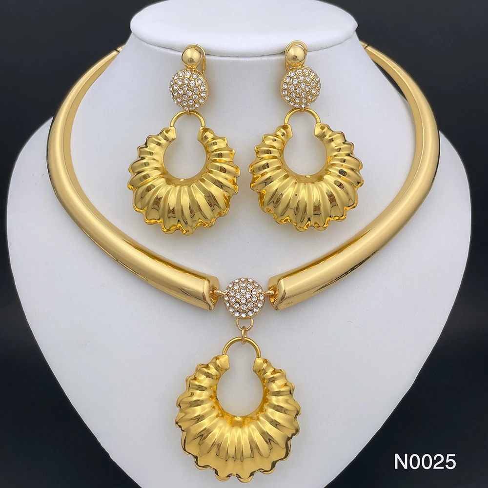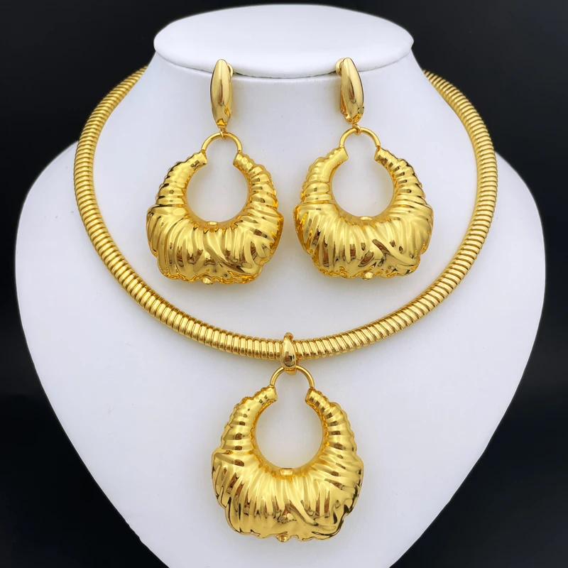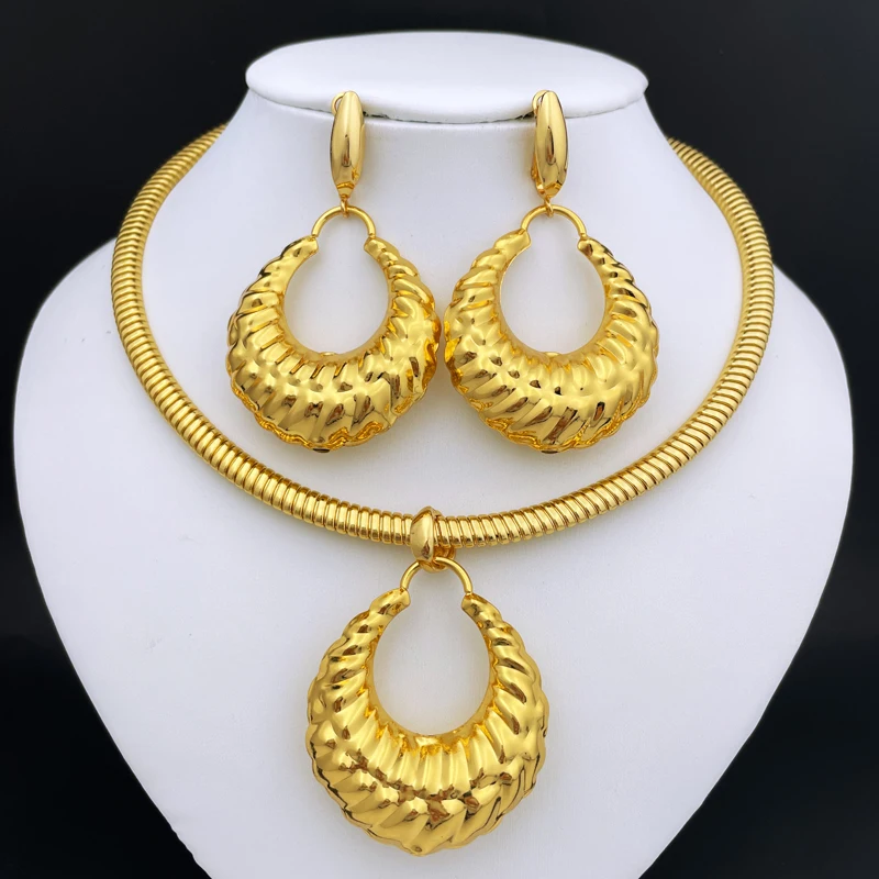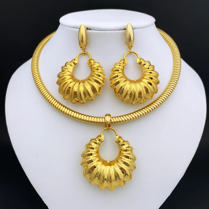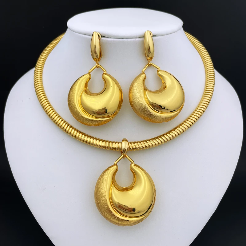Dubai Wedding Earrings Large Pendant Necklace Designed For The Bride Nigerian Gold Plated Fashion Jewelry