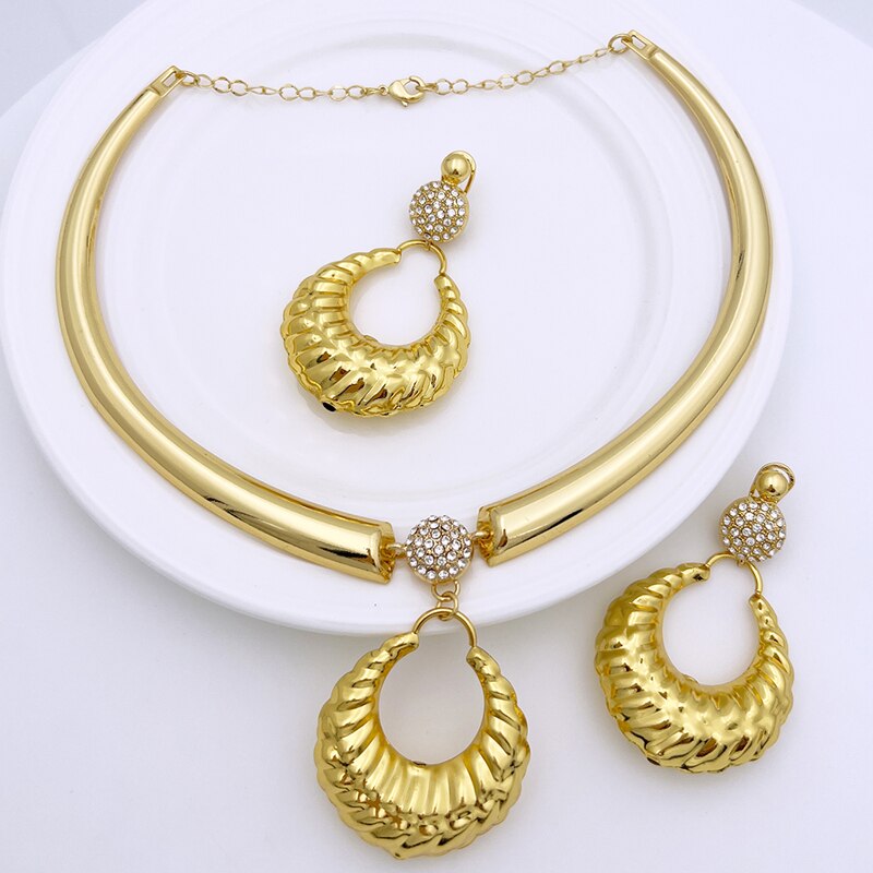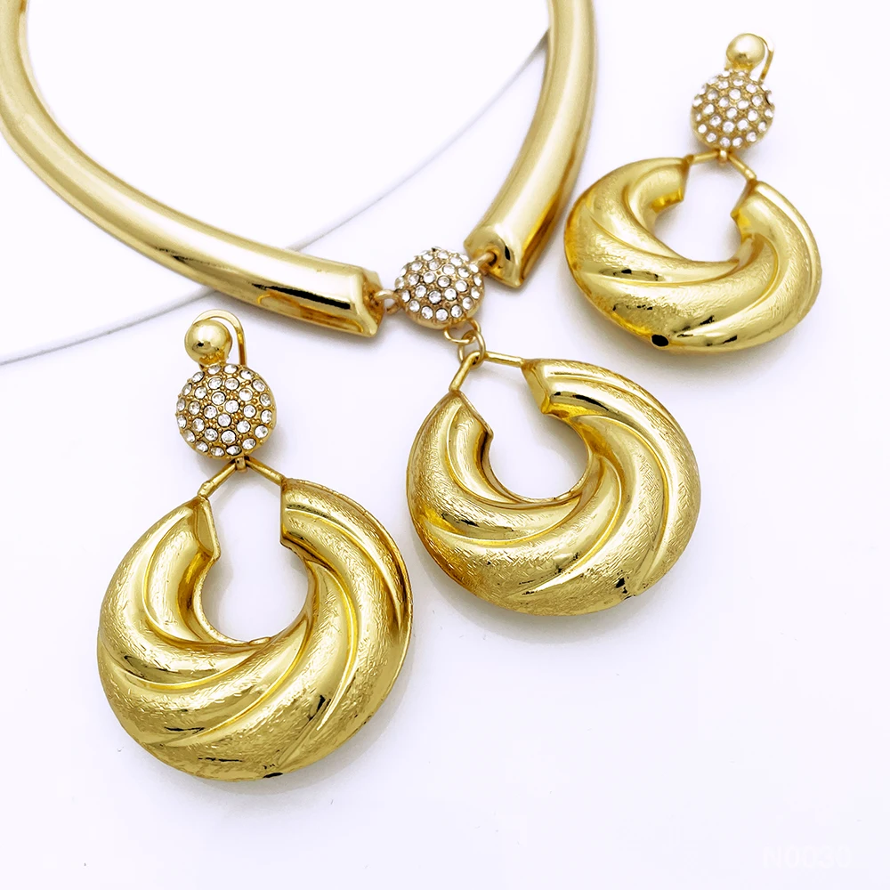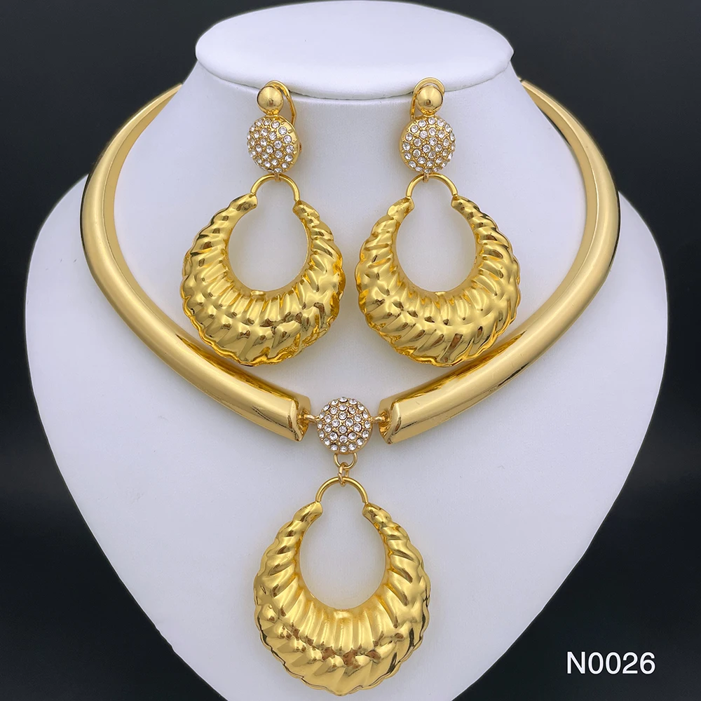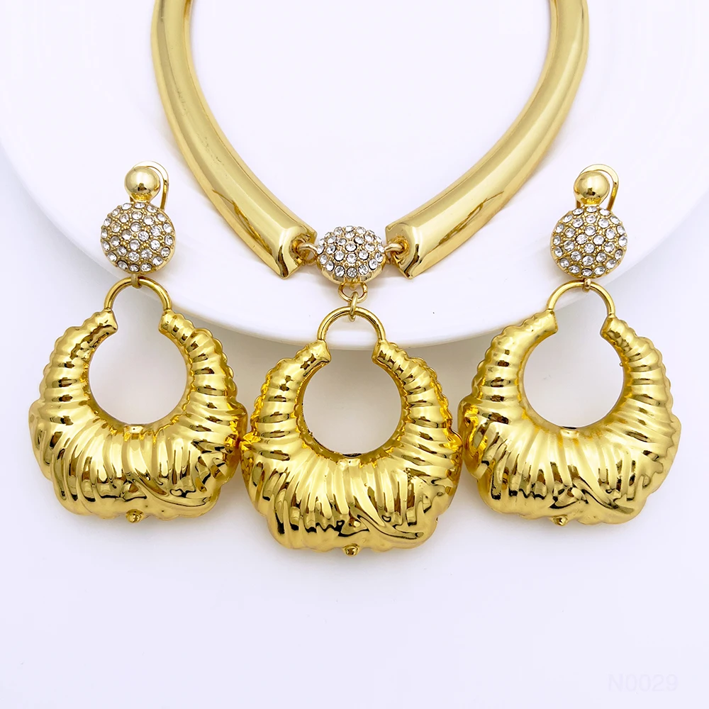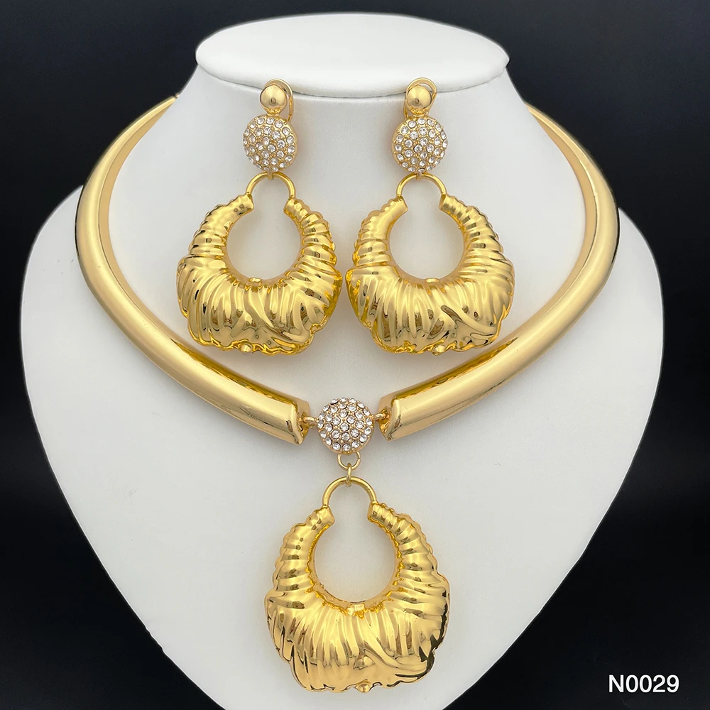 Dubai Wedding Earrings Large Pendant Necklace Designed For The Bride Nigerian Gold Plated Fashion Jewelry