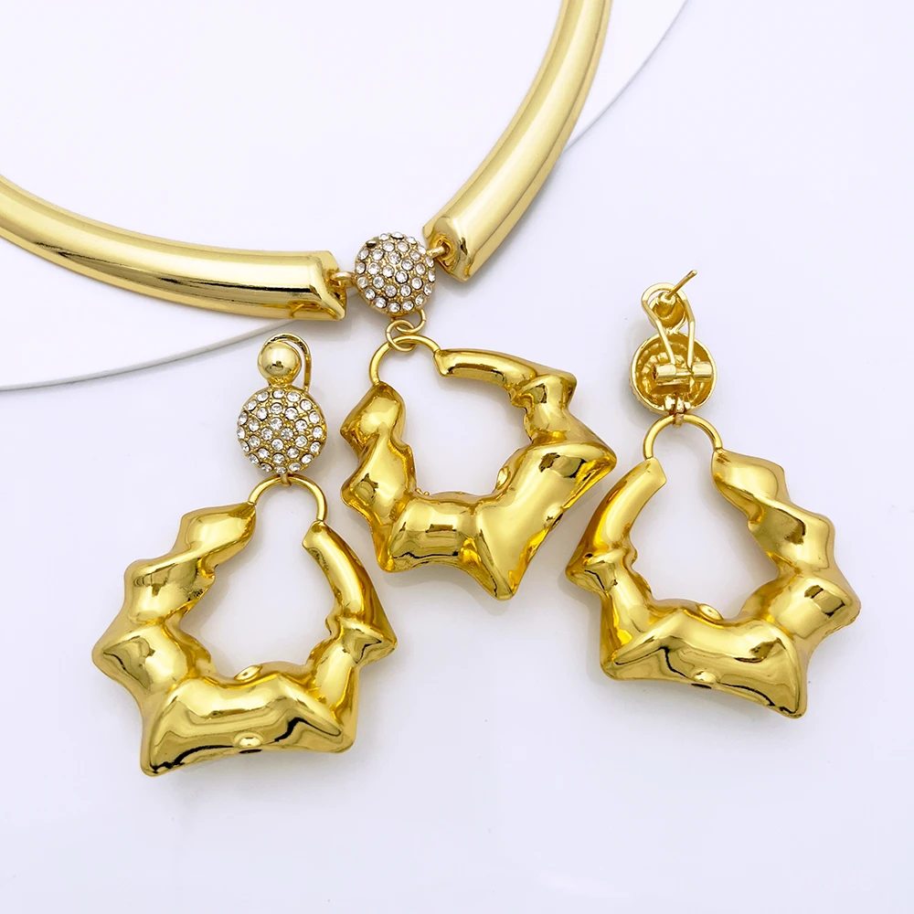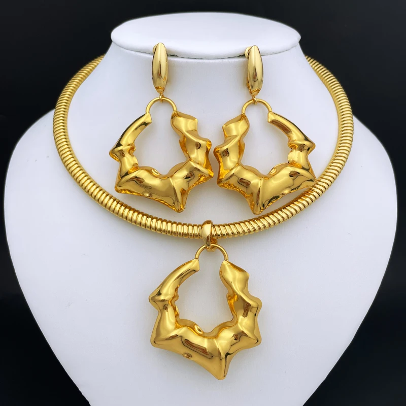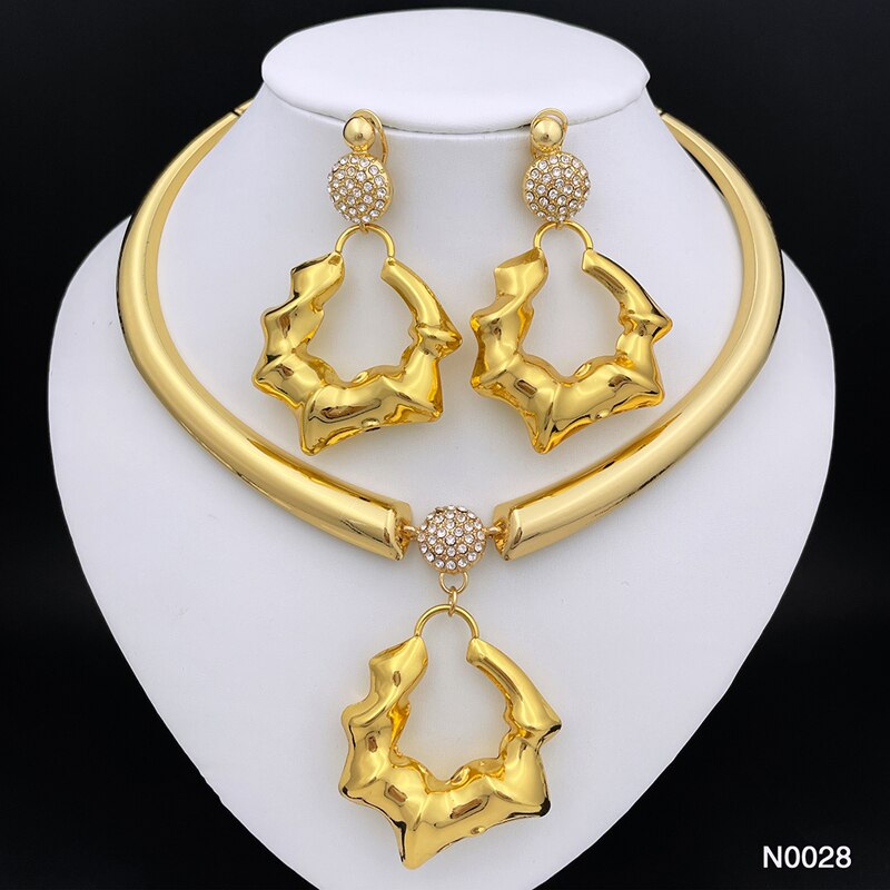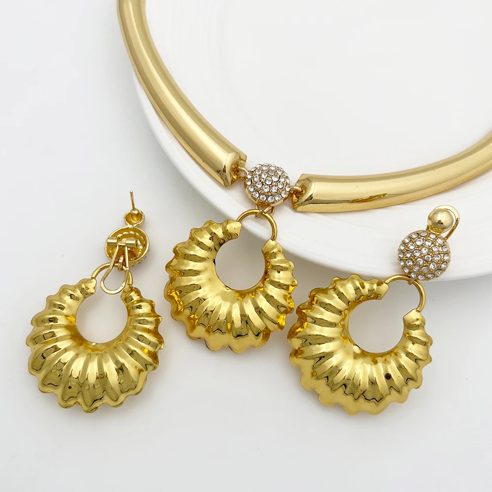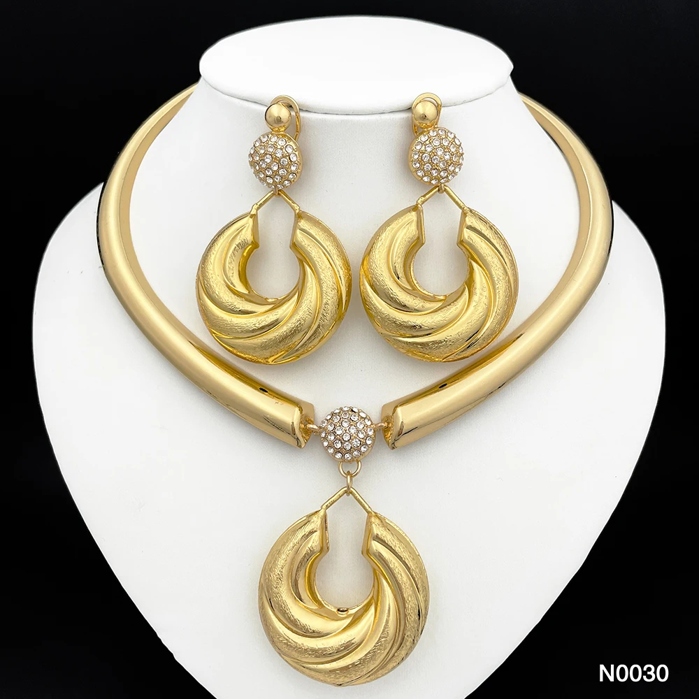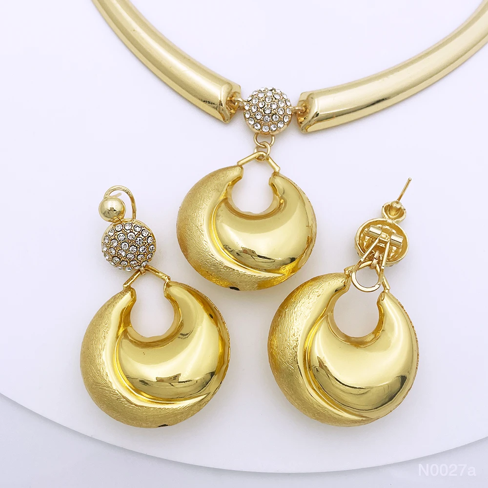 Dubai Wedding Earrings Large Pendant Necklace Designed For The Bride Nigerian Gold Plated Fashion Jewelry