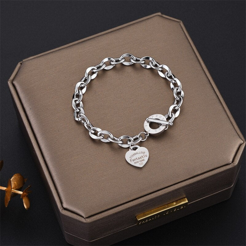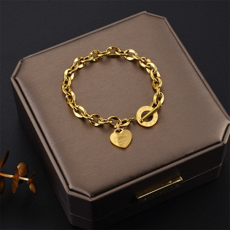 585 Gold Jewelry-316L Stainless Steel Gold Color Fashion Punk Heart OT Buckle Bangle & Bracelet for Women Bohemian Elegant Jewelry