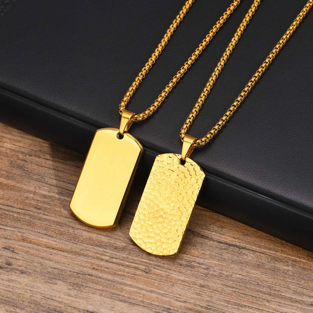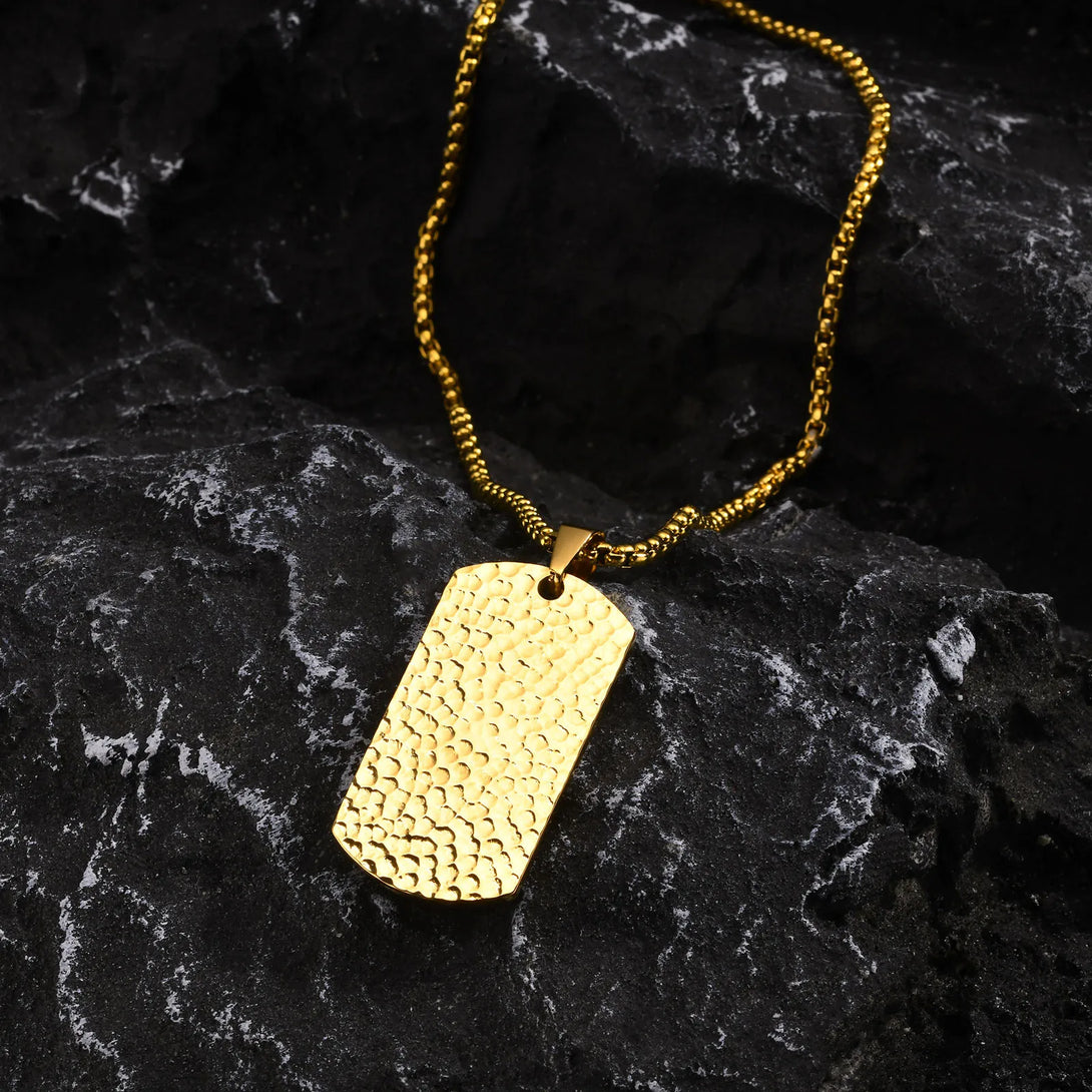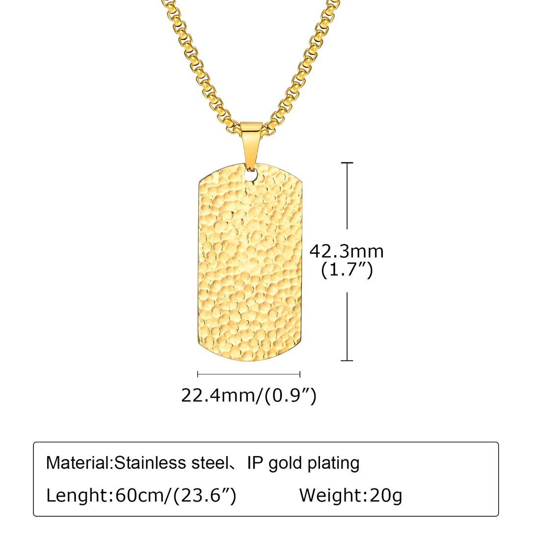 Gold Color Hammered Necklaces for Men,Waterproof Stainless Steel Dog Tag Pendant Collar,Birthday Party Gifts for Him