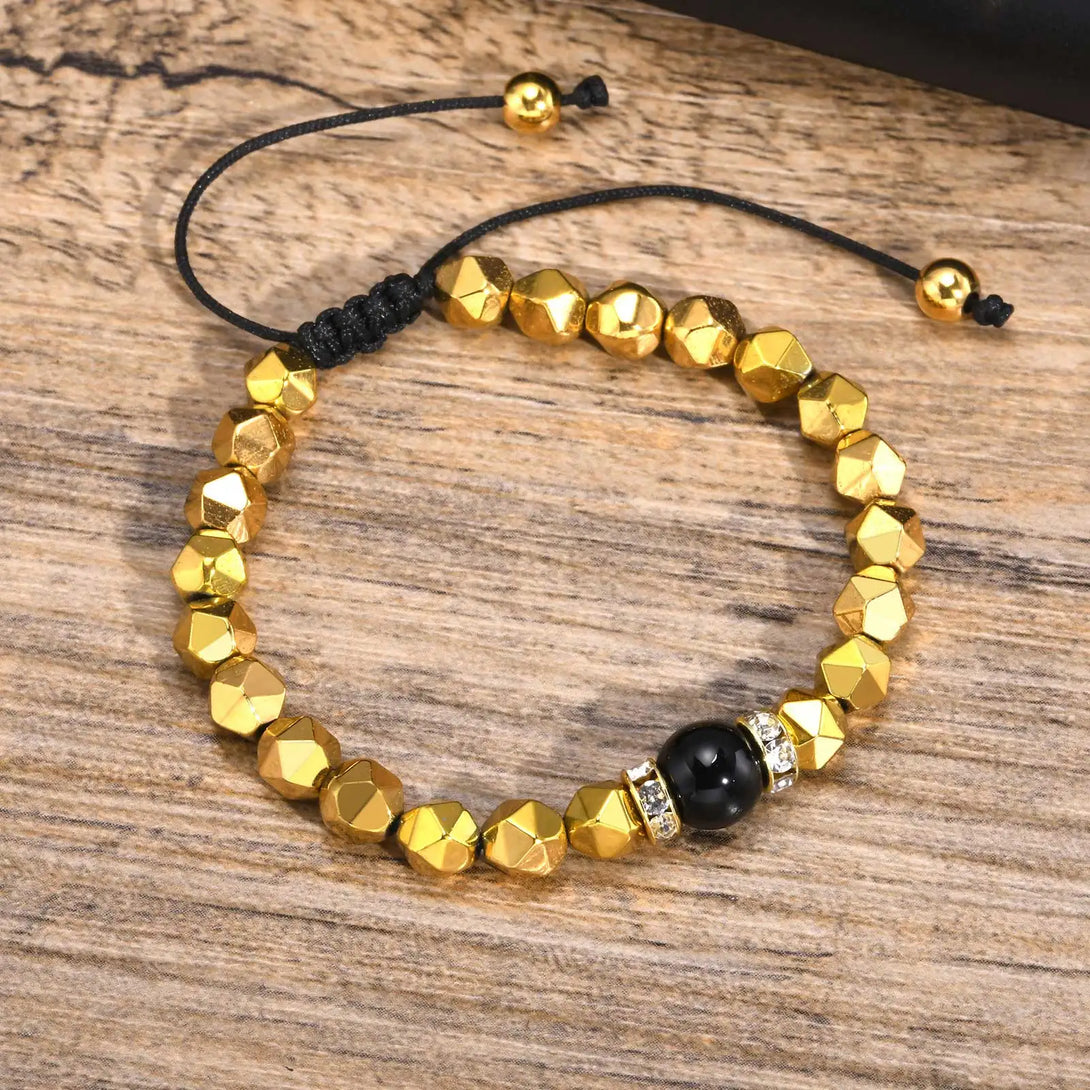 Gold Color Hematite Bracelets for Men Boys,Round Circular Cutting Surface Beads Bracelet