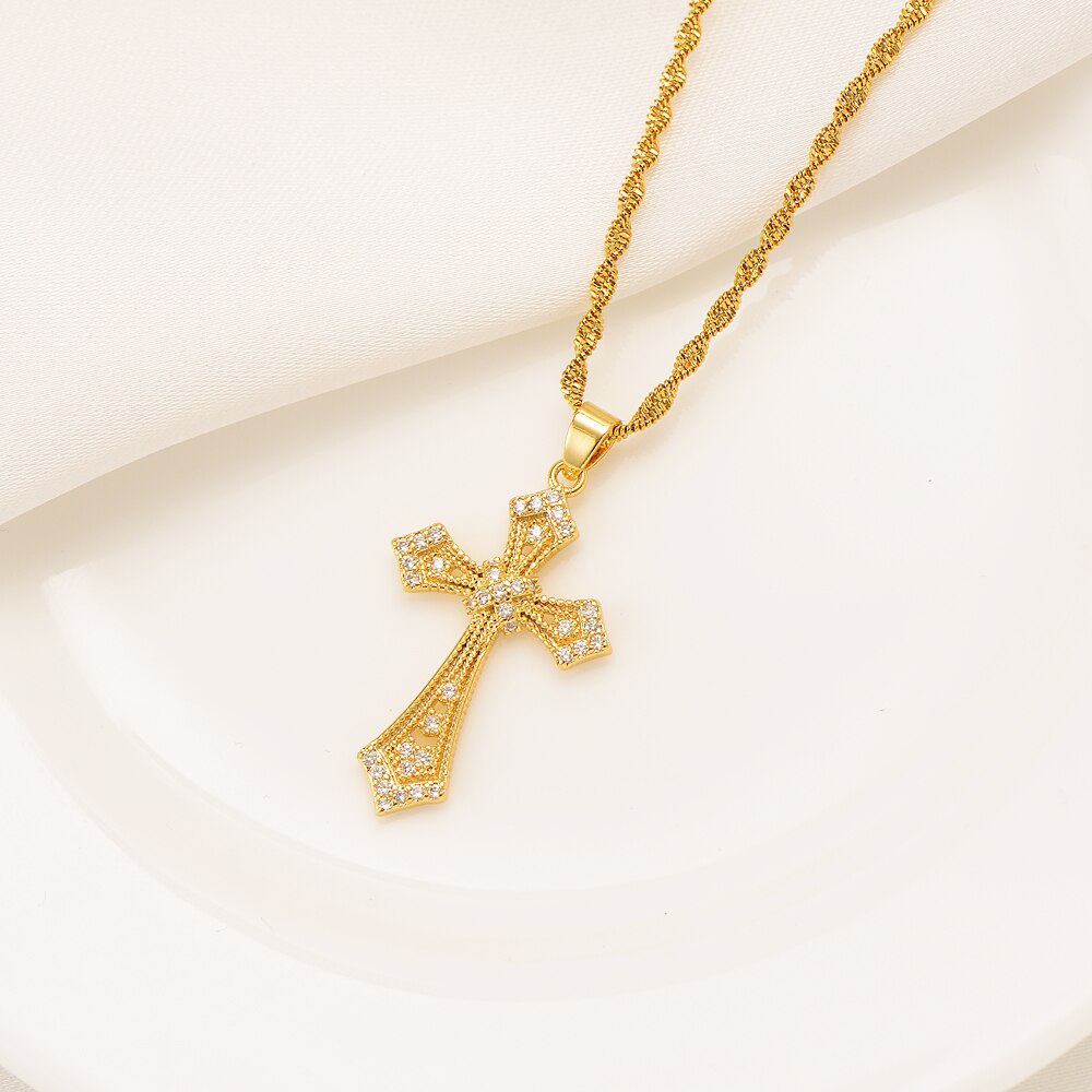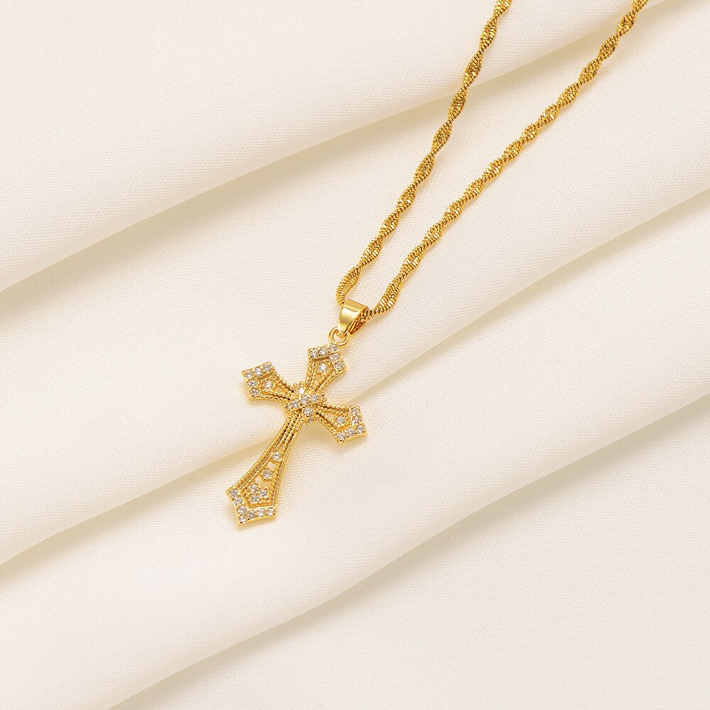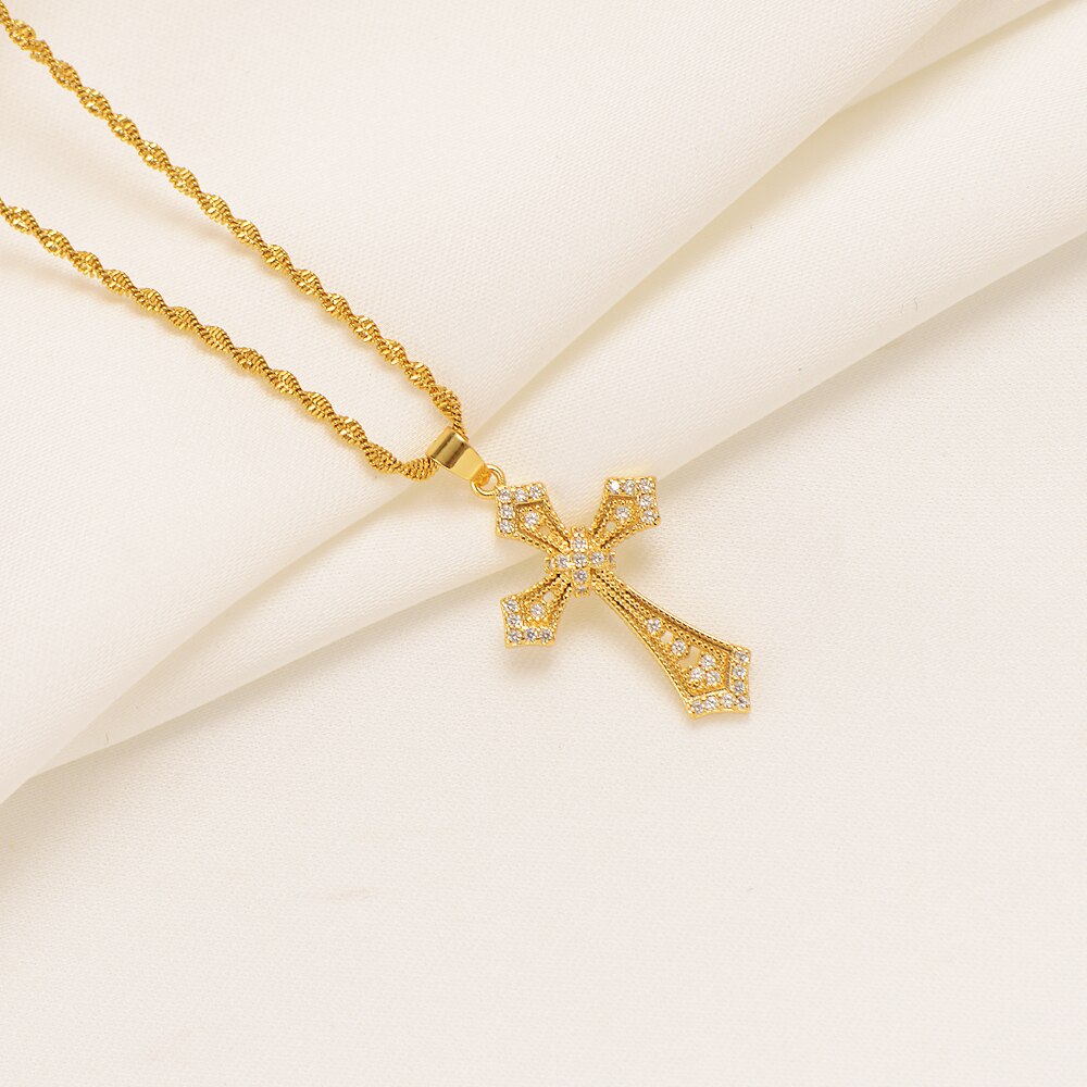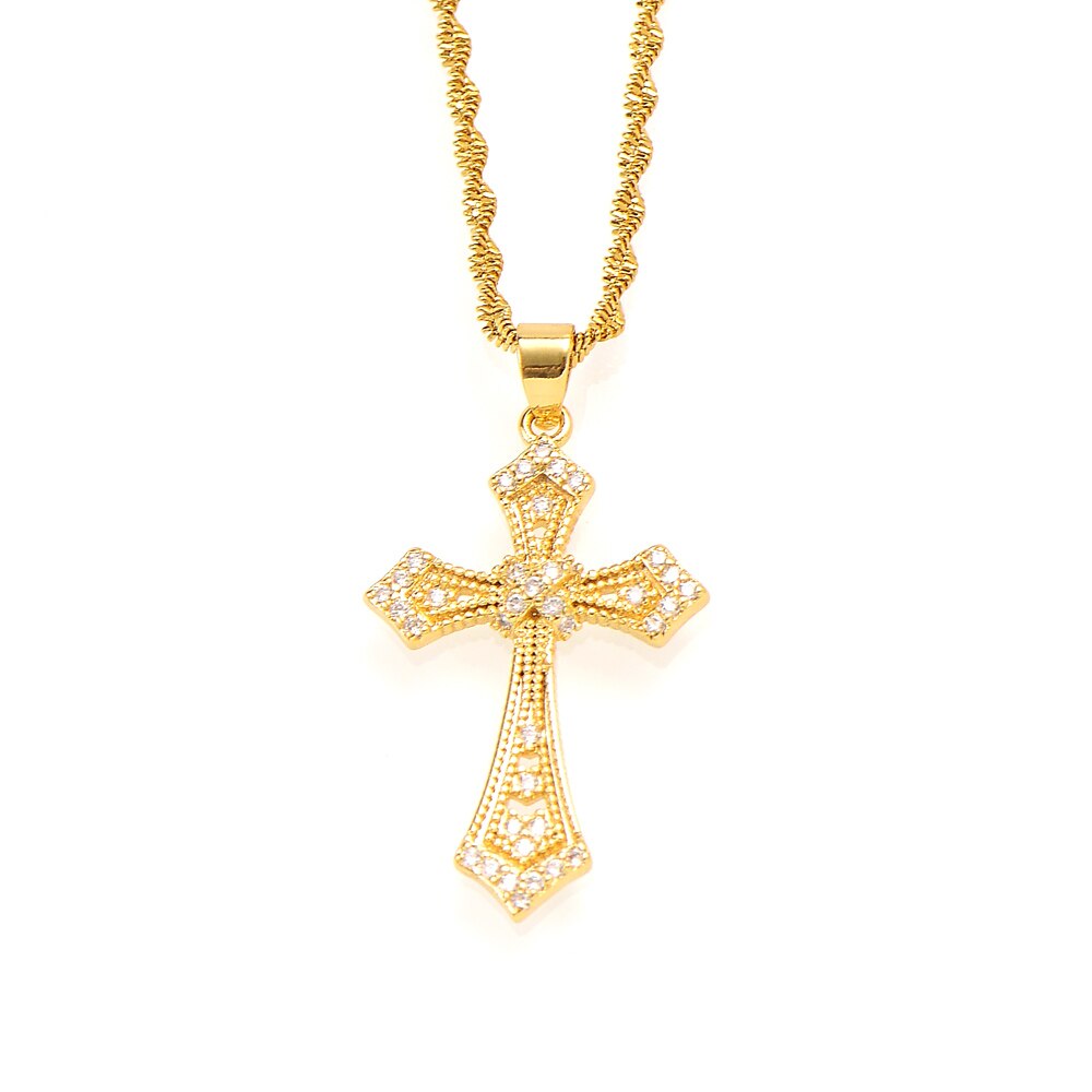 Gold color Jewelry Antique crystal cz Cross Crucifix Jesus Cross Pendant Necklaces
