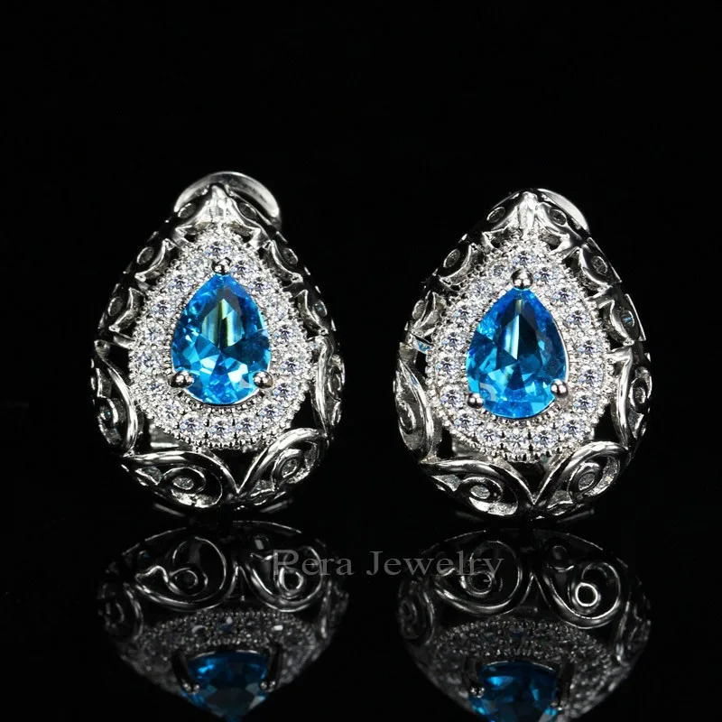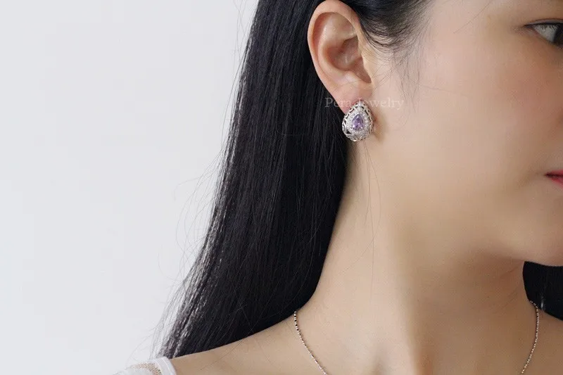 CZ Jewelry- Noble Design Women Wedding Party Ear Gold Color Jewelry Big Oval Cut Stud Earrings With Cubic Zirconia E185