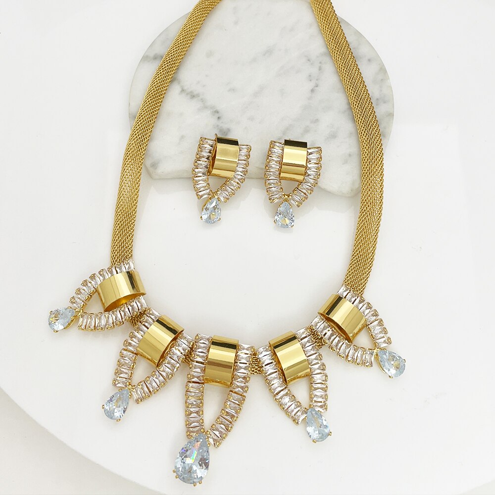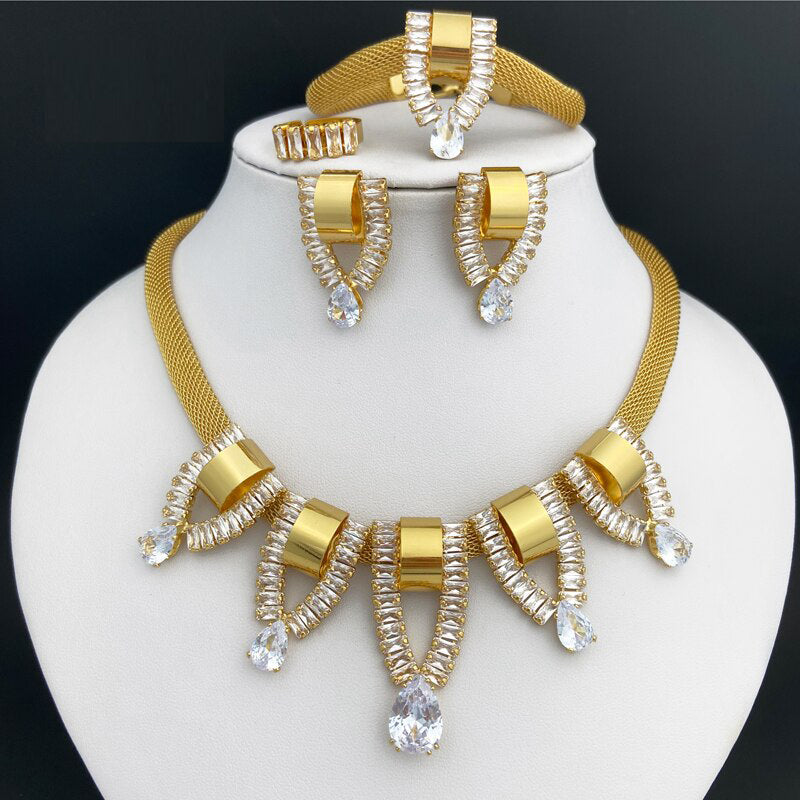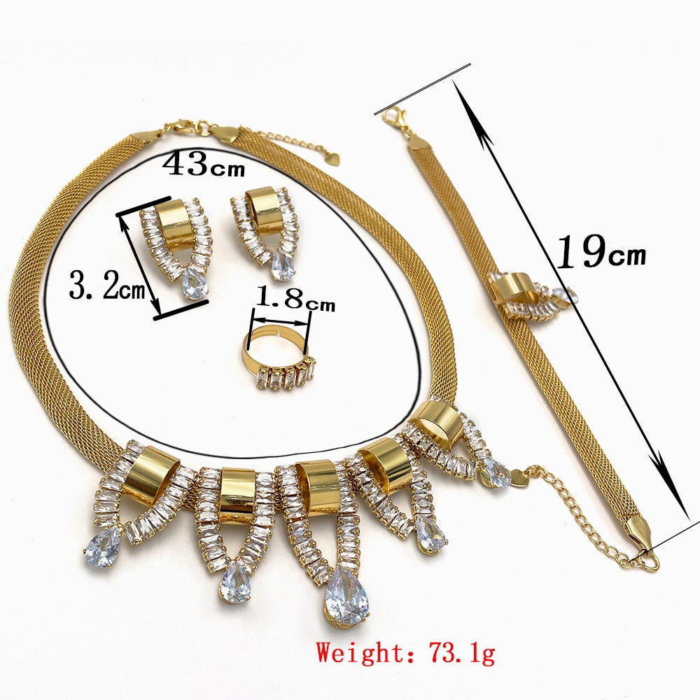 Gold Color Jewelry Set For Women Dubai Elegant Necklace bracelet Earing Party Wedding Jewellery Sets