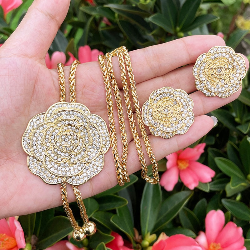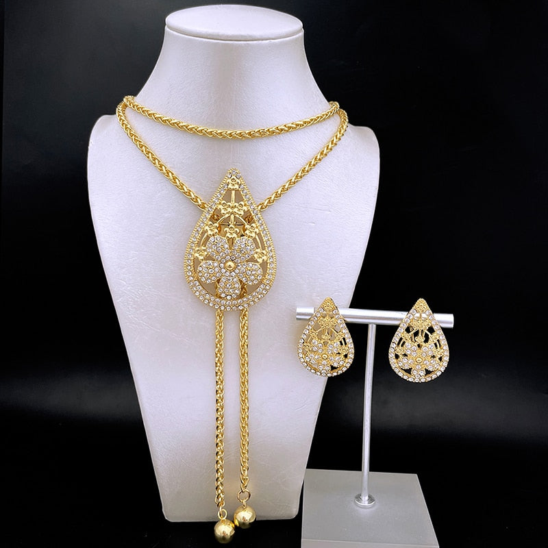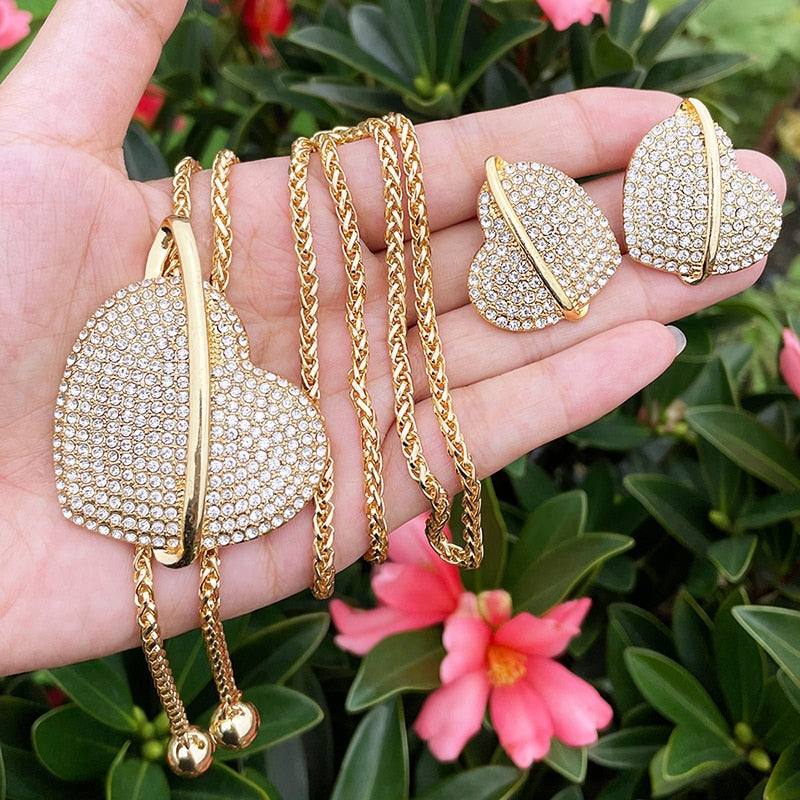 keyword: Gold Color Jewelry Set Heart Jewelry Women Necklace Earrings Set ensembles de bijoux italiens