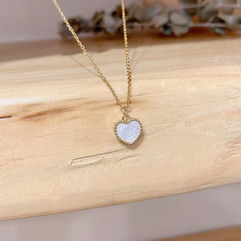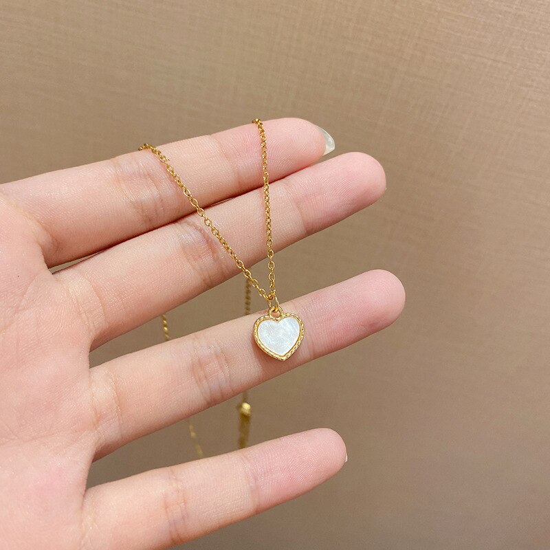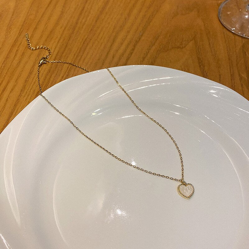 585 Gold Jewelry-316L Stainless Steel Gold Color Korean Fashion Shell HeartShaped Pendant Necklace For Women Girls Party Jewelry Gift