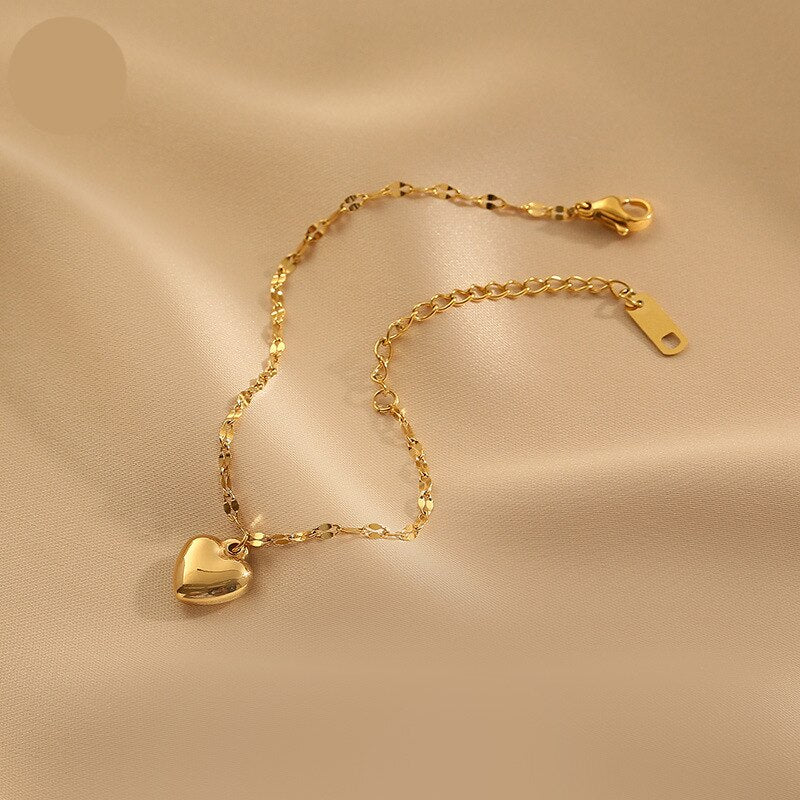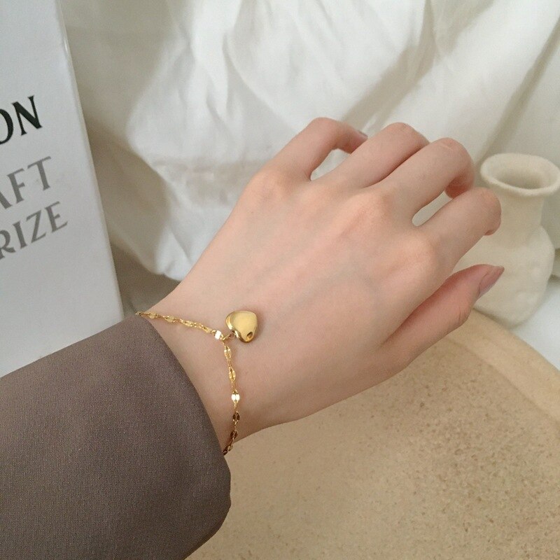585 Gold Jewelry- 316L Stainless Steel Gold Color Korean Fashion Simple Heart Pendant Bracelet For Women Wedding Party Wrist Jewelry