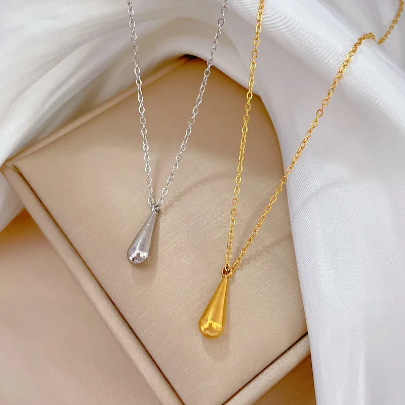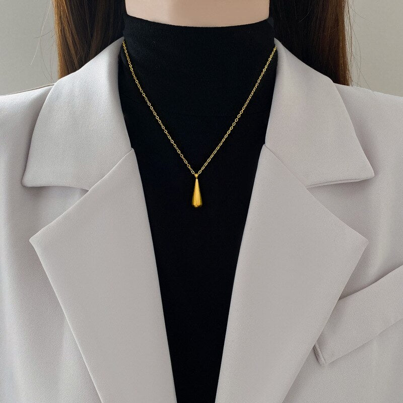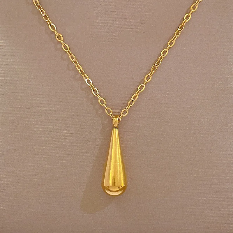 585 Gold Jewelry-316L Stainless Steel Gold Color Korean Sinple Geometric Water Drop Pendant Necklace For Women Girls Party Jewelry