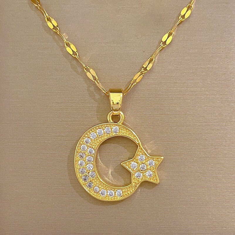 585 Gold Jewelry-316L Stainless Steel Gold Color Korean Sweet Moon Star Pendant Necklace For Women Gir Wedding Party Jewelry Gifts