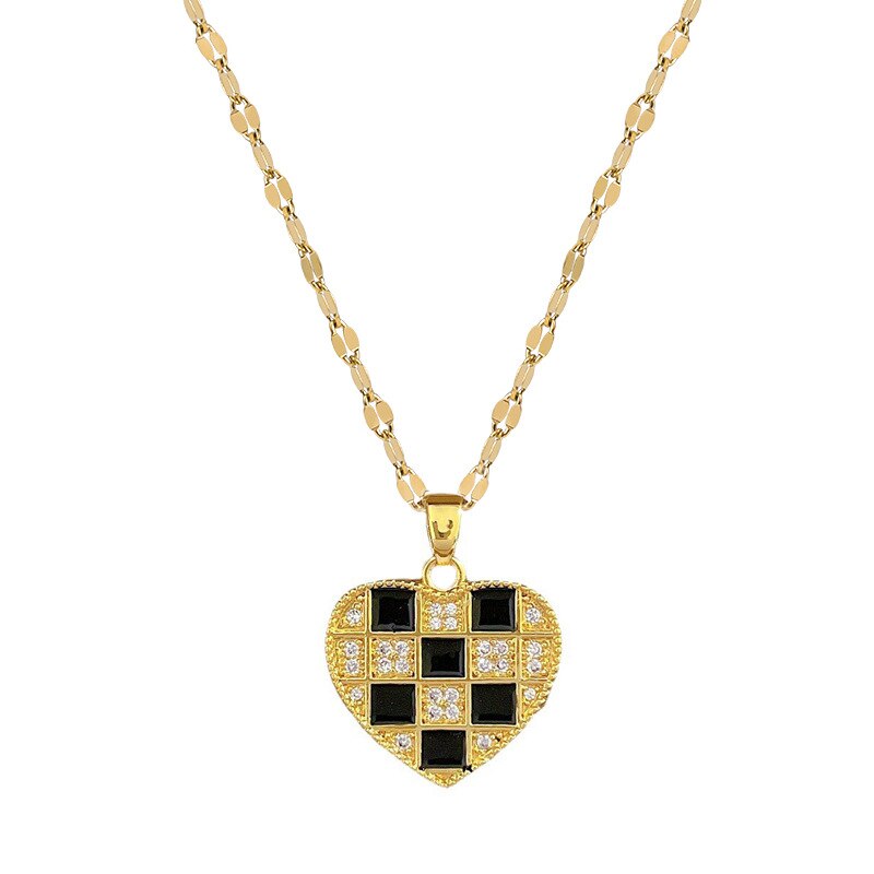 585 Gold Jewelry-316L Stainless Steel Gold Color Love Heart Thousand Bird Grid Pendant Necklace Temperament For Women Sexy Clavicle Chain