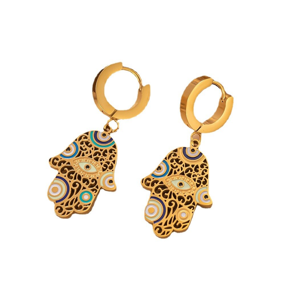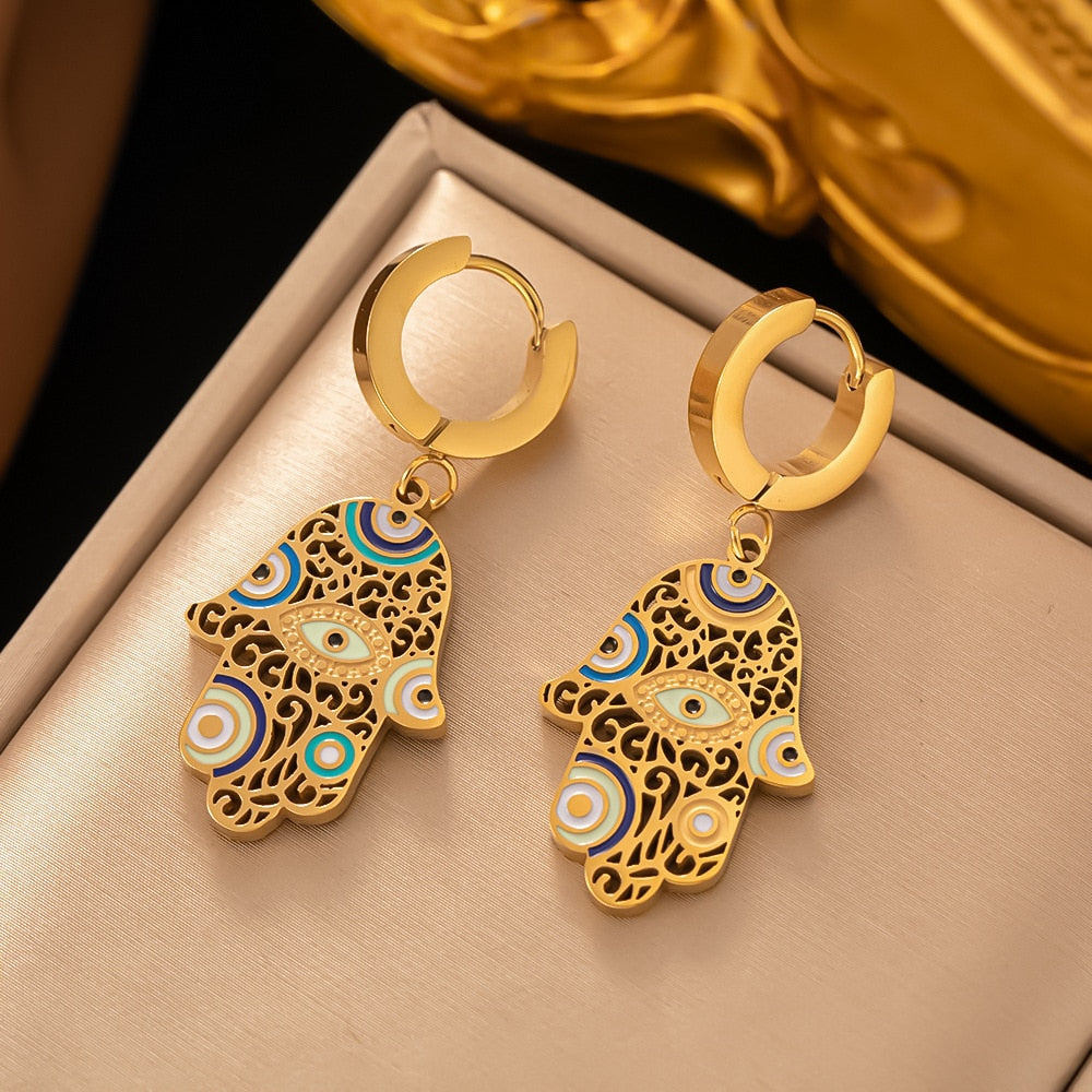 585 Gold Jewelry-316L Stainless Steel Gold Color Luxury Jewelry Set Personality Punk Turkey Blue Wvil Eye Necklace Earrings Bracelet Women