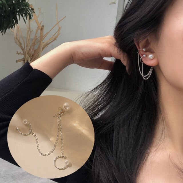 Fashion Earrings-New Fashion Gold Color Moon Star Clip Earrings For Women Simple Fake Cartilage Long Tassel Ear Cuff Jewelry Gift