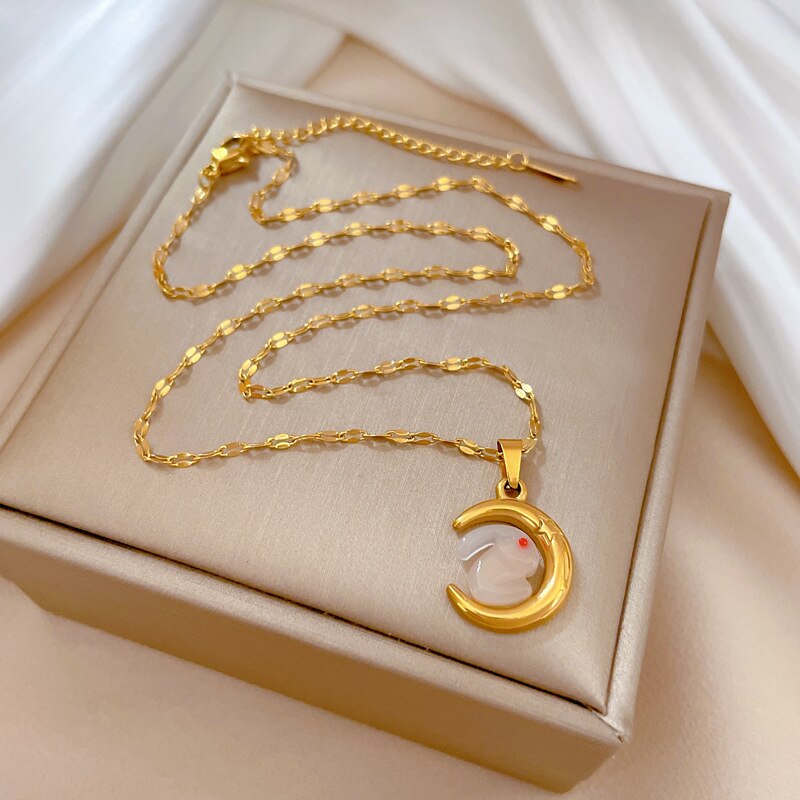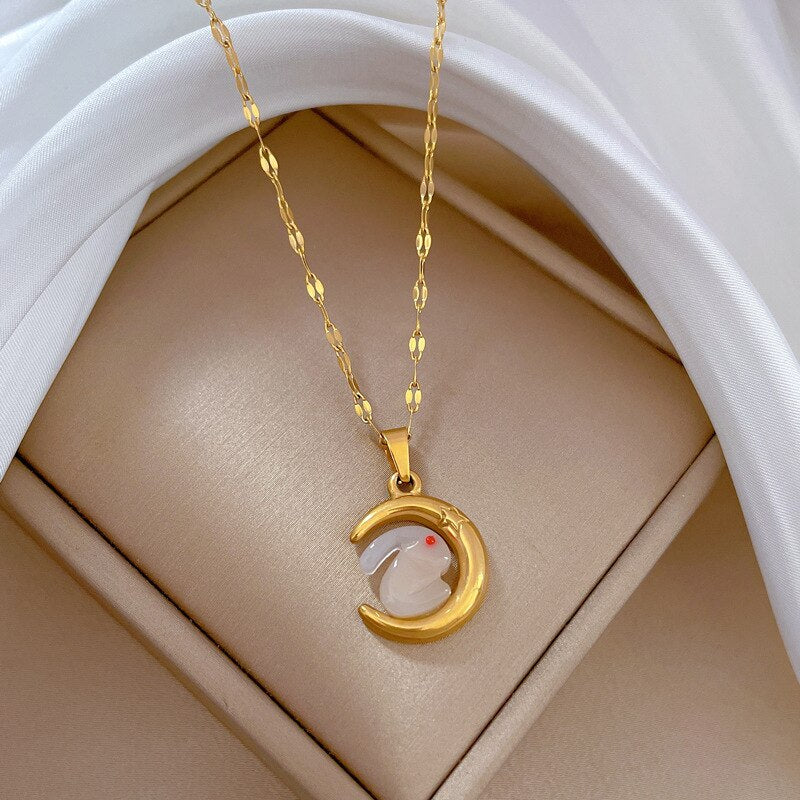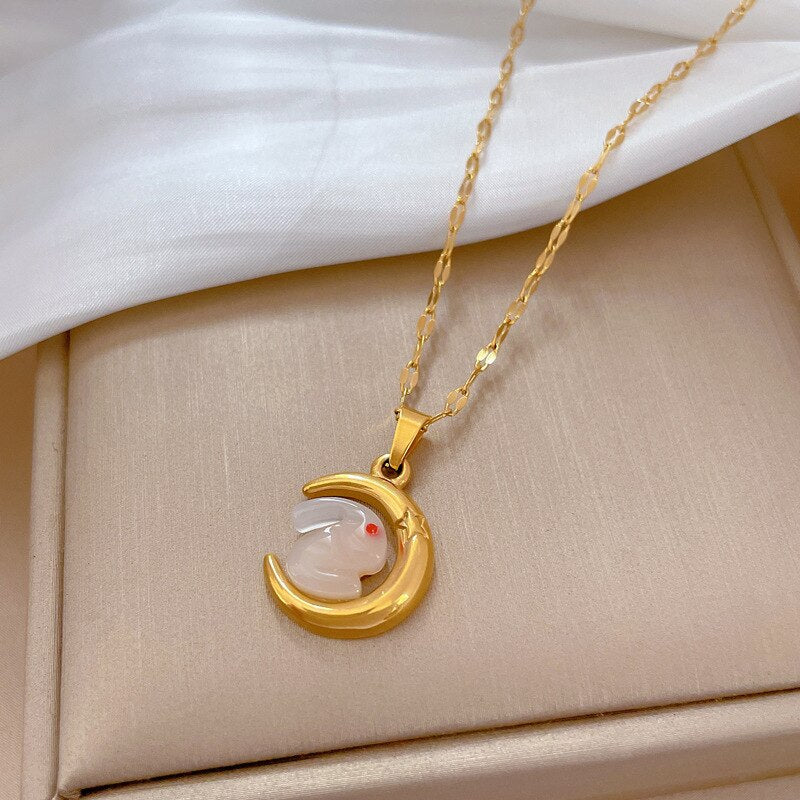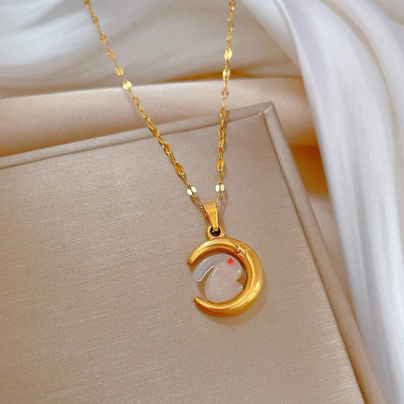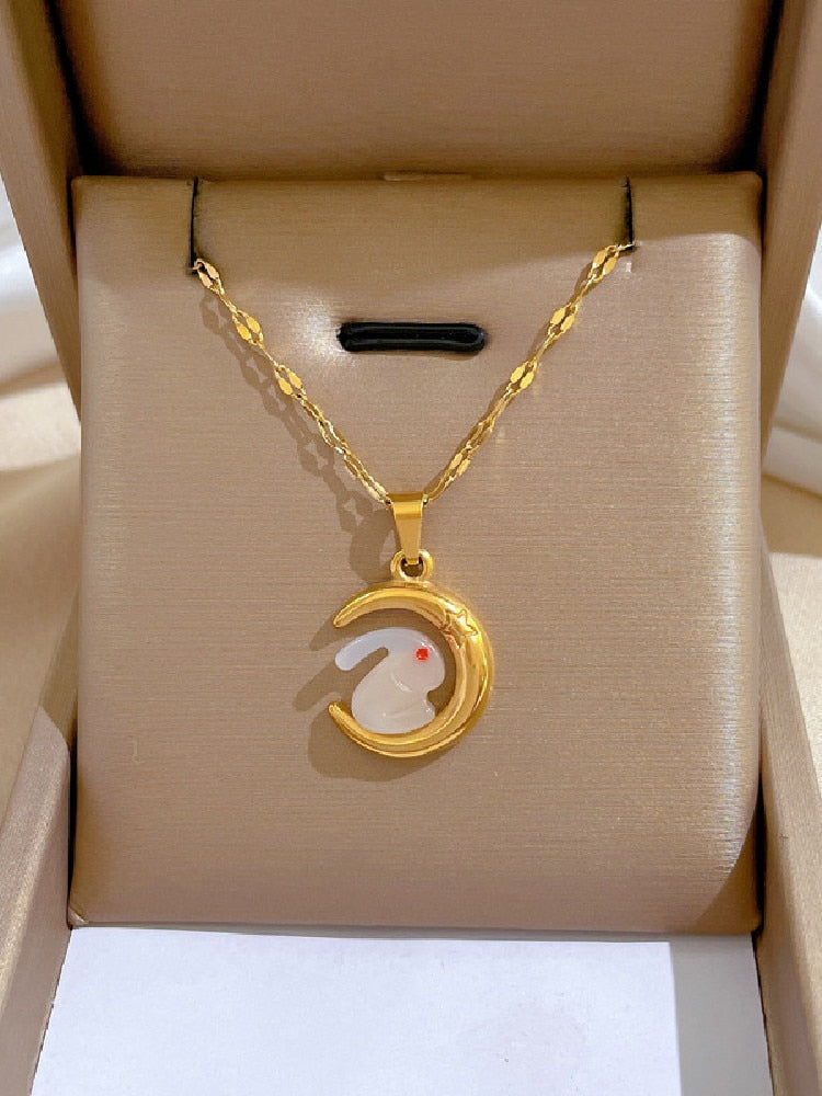 585 Gold Jewelry-316L Stainless Steel Gold Color Necklace For Women Chinese zodiac Rabbit Jewelry Lucky Pendant Necklace Birthday Gift