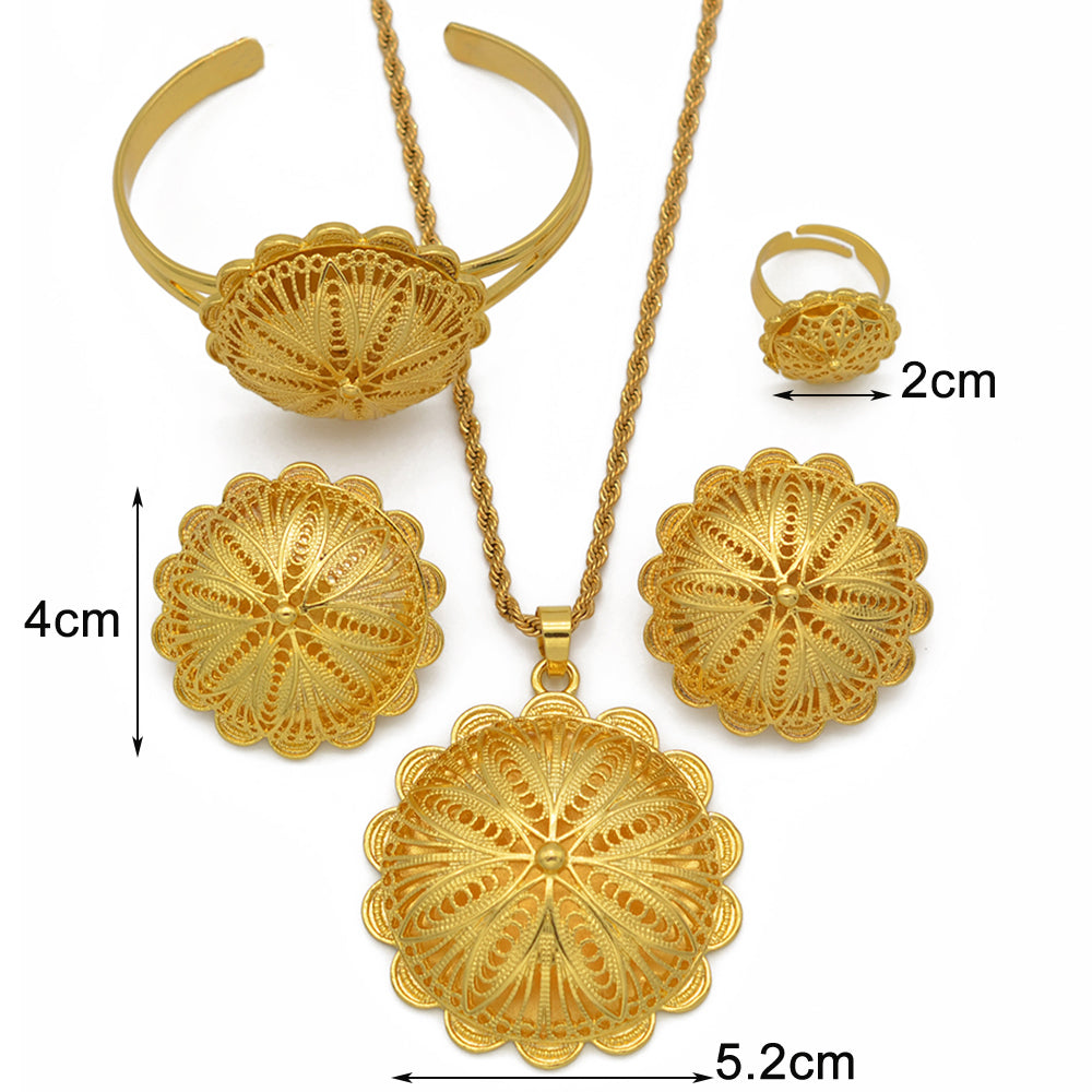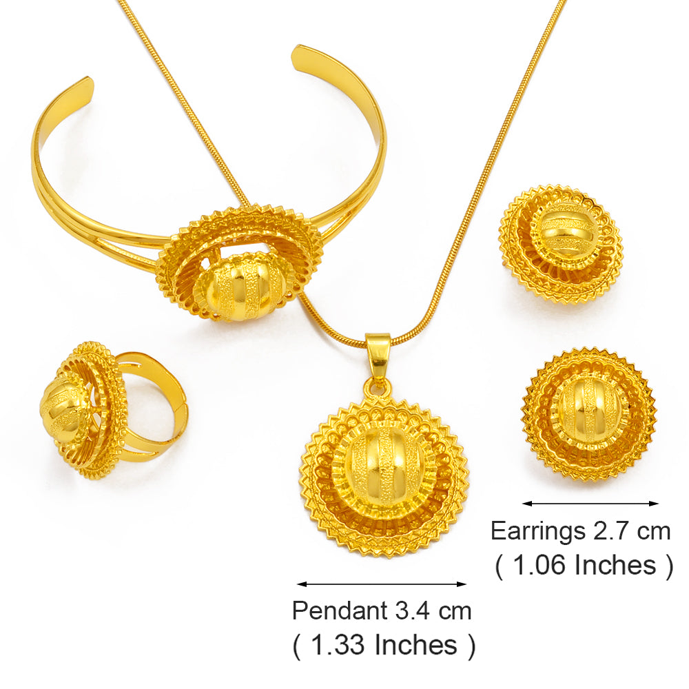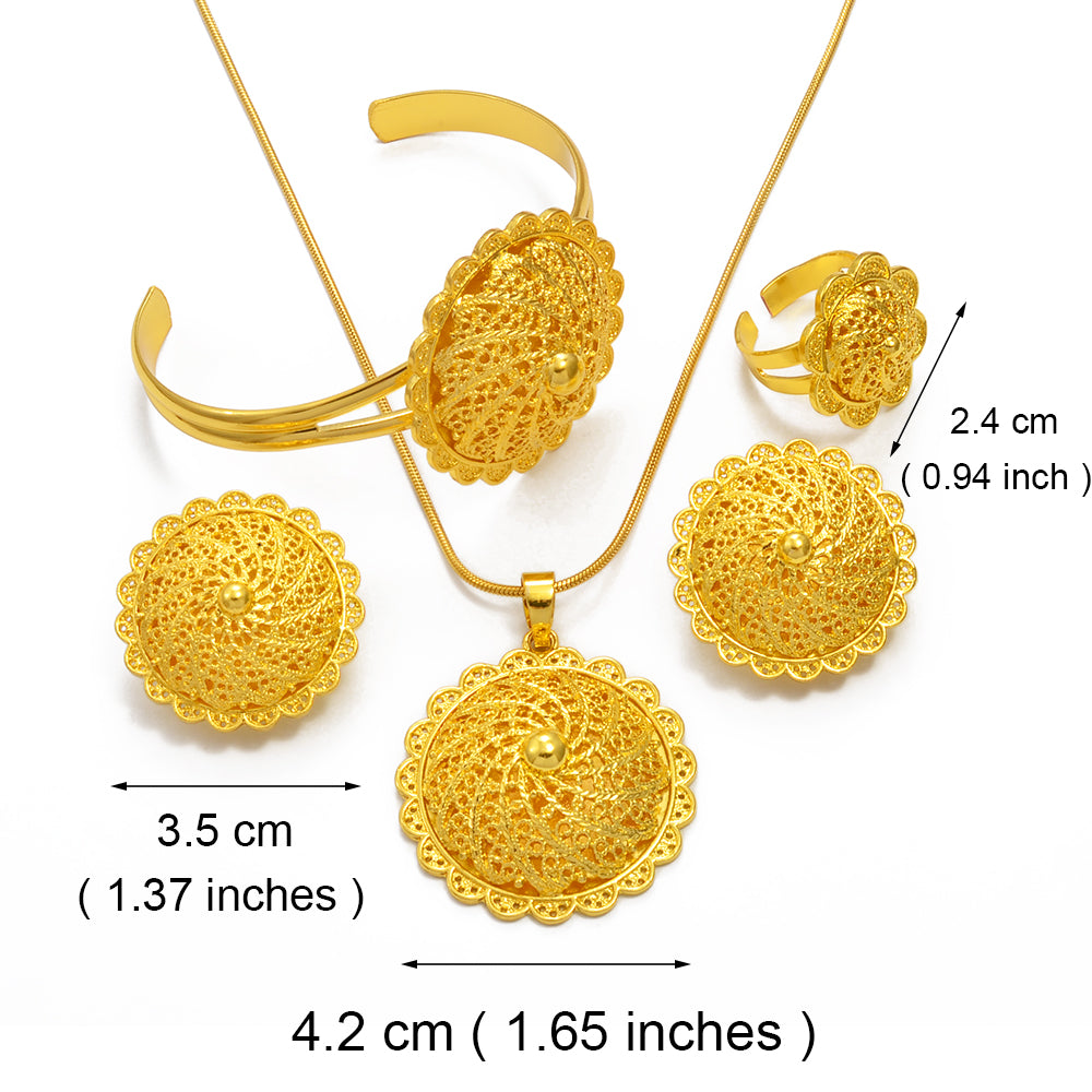 Anniyo Ethiopian Jewelry sets Pendant Necklaces Earrings Ring Bangles for Womens Gold Color Eritrean African Bride Gifts