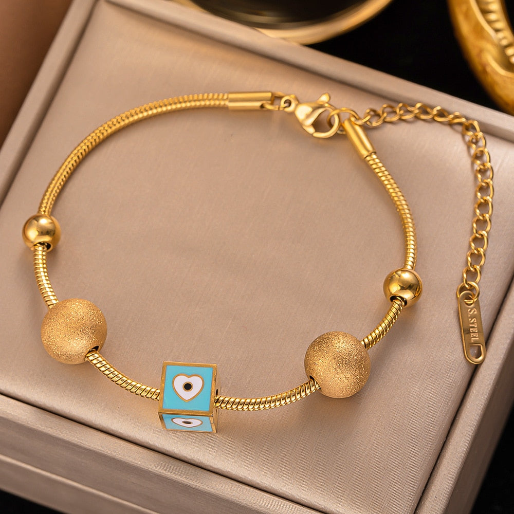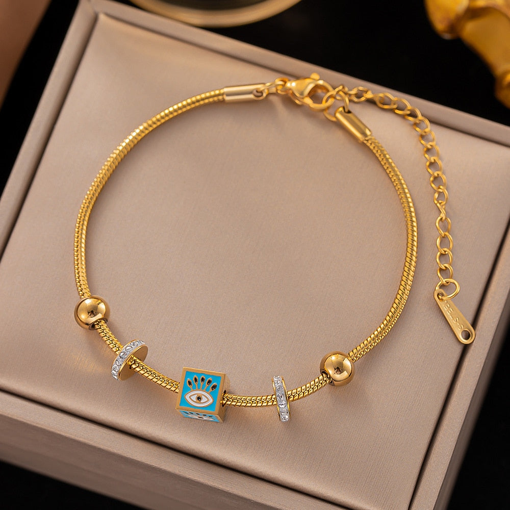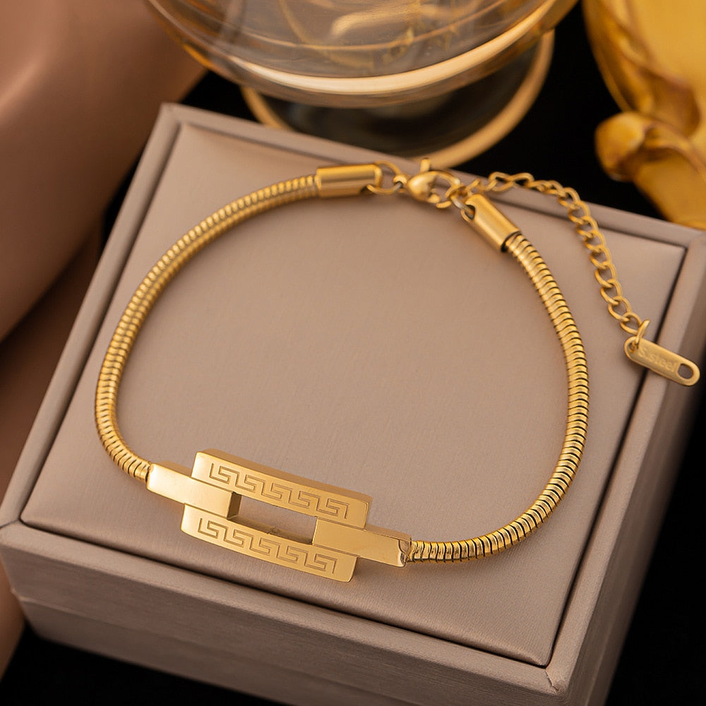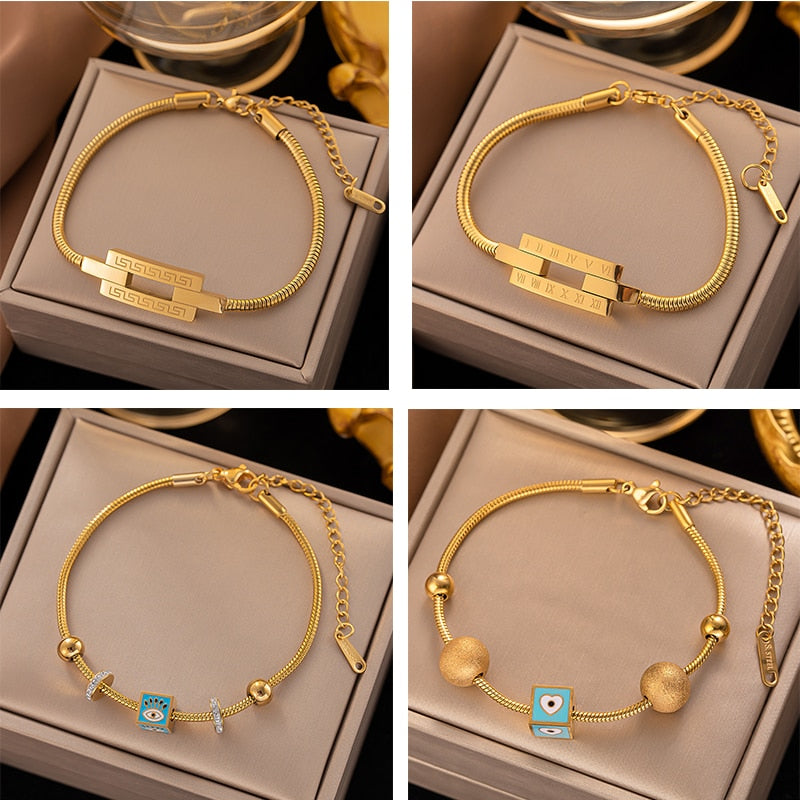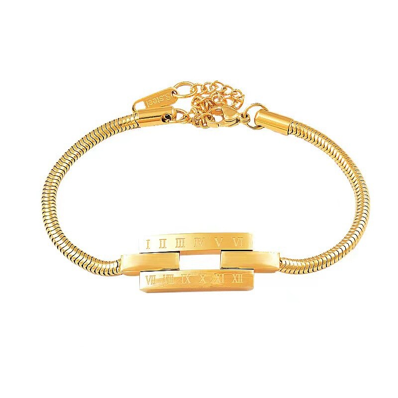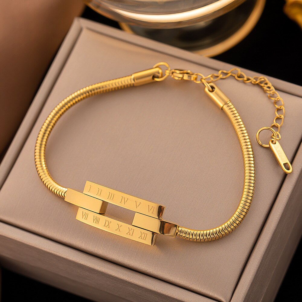 585 Gold Jewelry-316L Stainless Steel Gold Color Roman numerals Snake Chain Bangle & Bracelet for Women Bohemian Elegant Jewelry