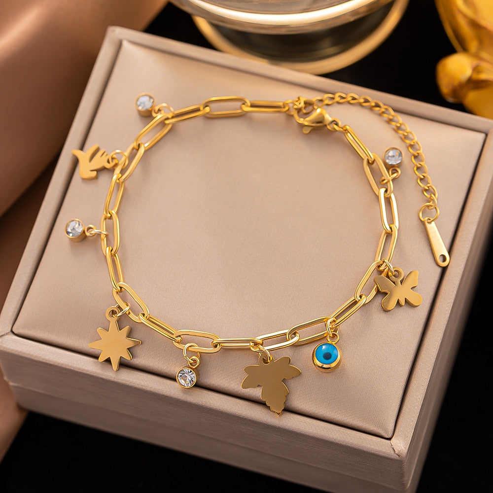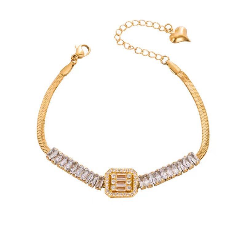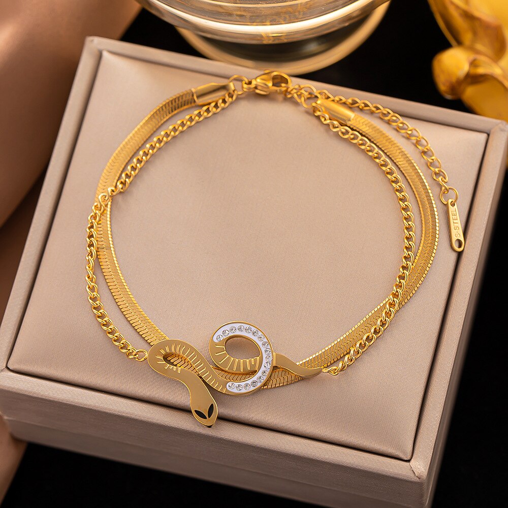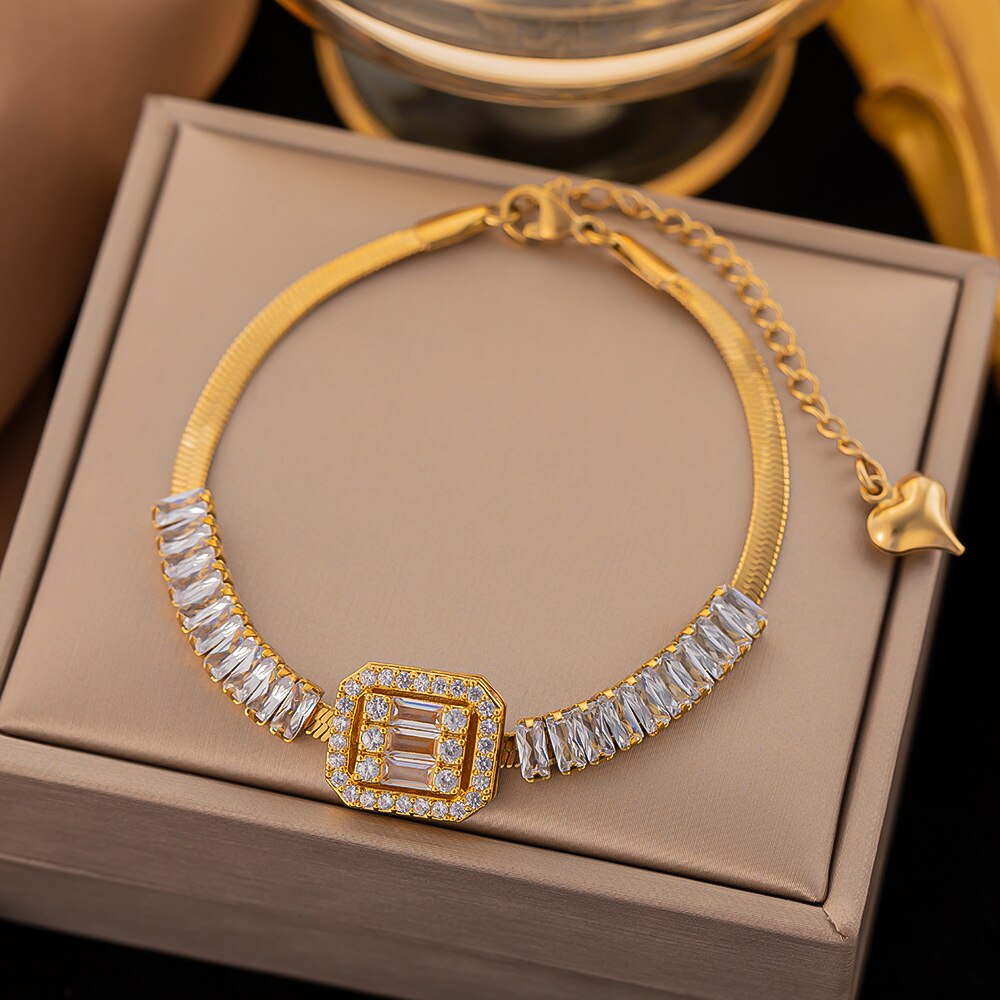 585 Gold Jewelry-316L Stainless Steel Gold Color Shine Zirconia Geometric Snake Shaped Bracelet For Women Wedding Party Wrist Jewelry