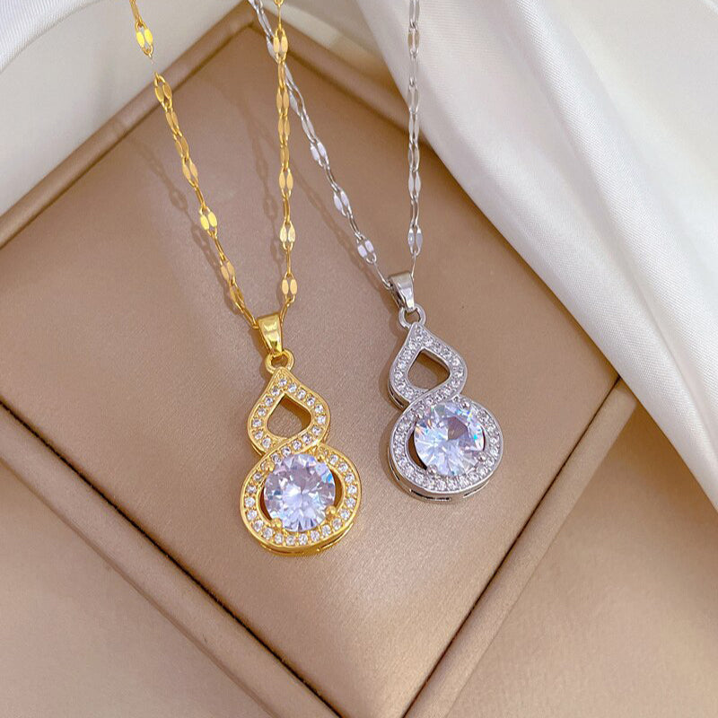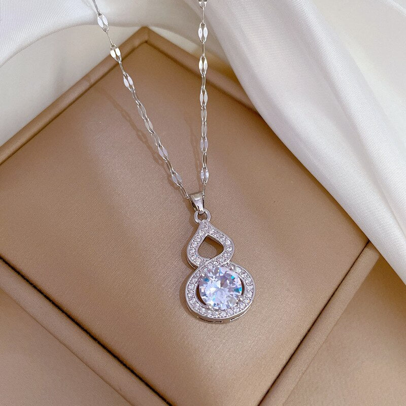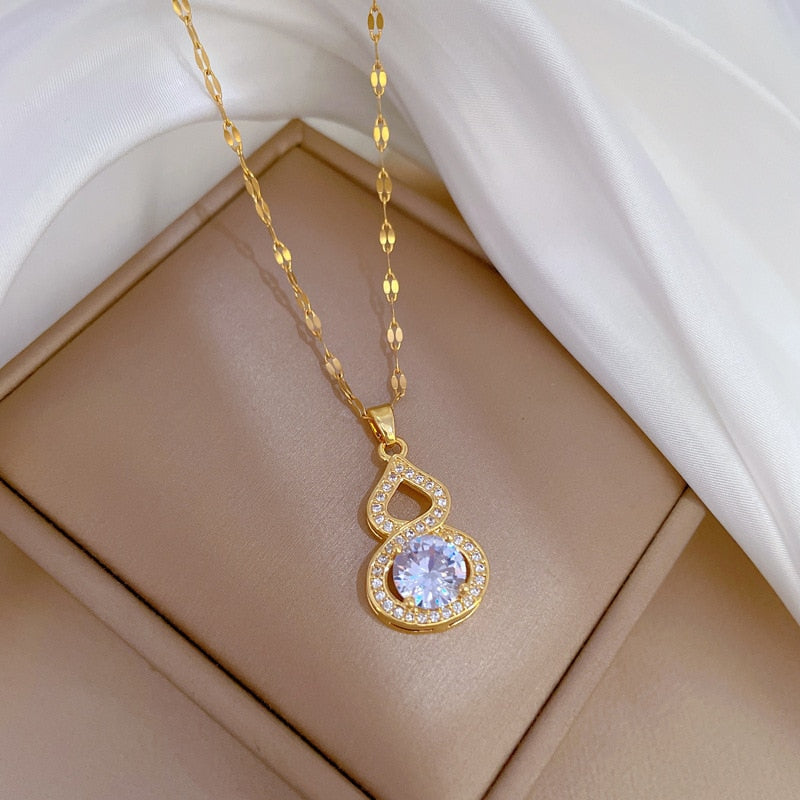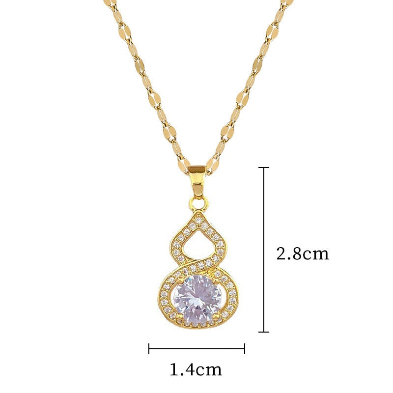 585 Gold Jewelry-316L Stainless Steel Gold Color Shine Zirconia Gourd Shaped Pendant Necklace For Women Girls Party Jewelry Gift