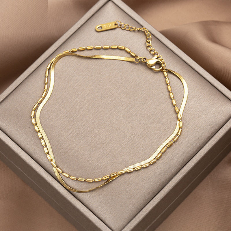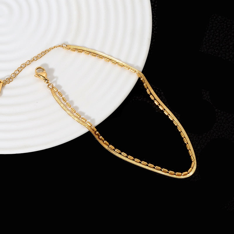 585 Gold Jewelry-316L Stainless Steel Gold Color Simple Double Layer Beads Anklet for Women Foot Accessories Bohemian Jewelry