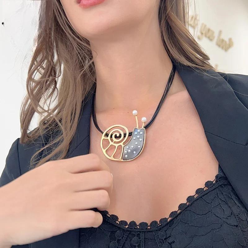 Gold Color Snail Suspension Pendants Chokers Necklace for Women Cute Animal Hollow Out Gothic Jewelry Vintage Accessories New