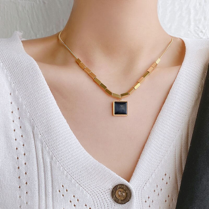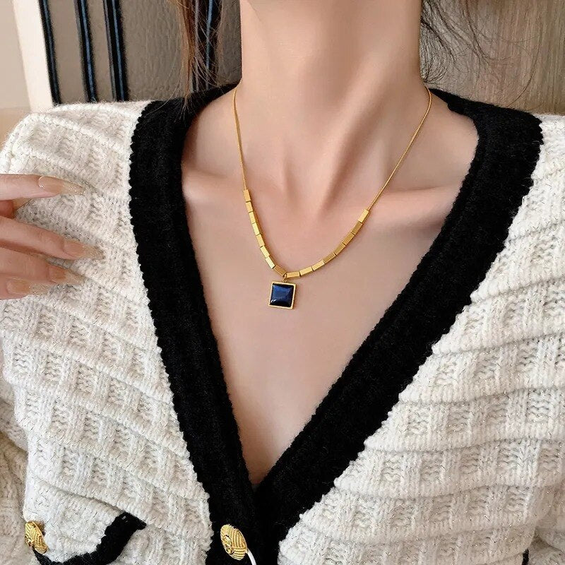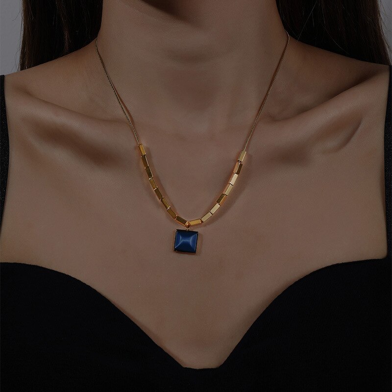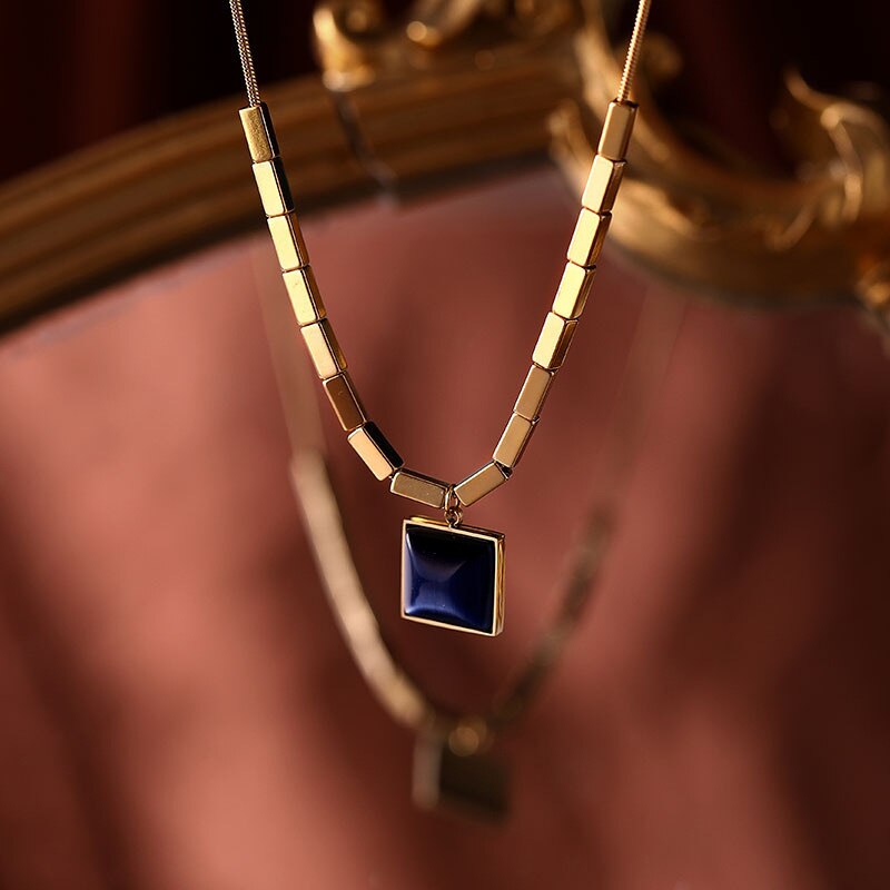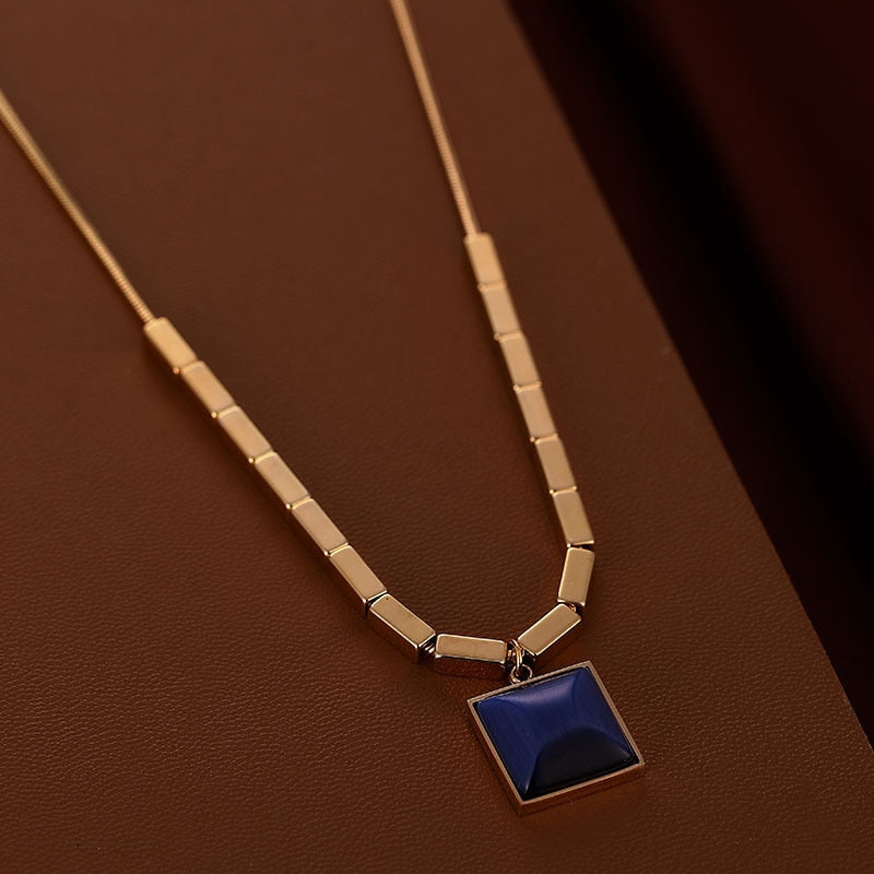 585 Gold Jewelry-316L Stainless Steel Gold Color Square Blue Srone Pendant Necklace For Women Classic Luxury Girls Jewelry Chain Birthday