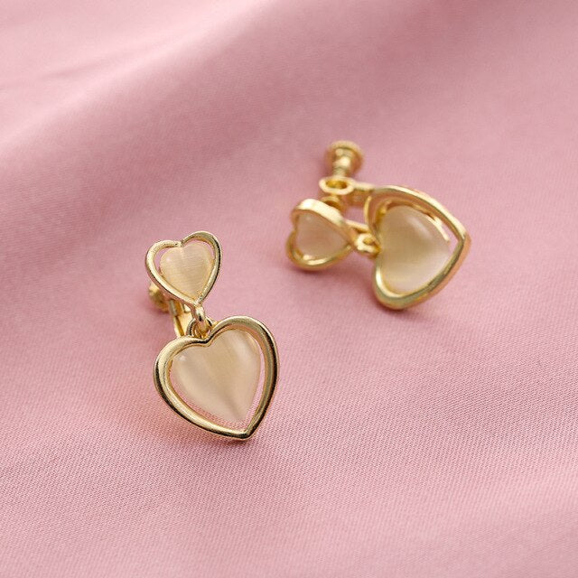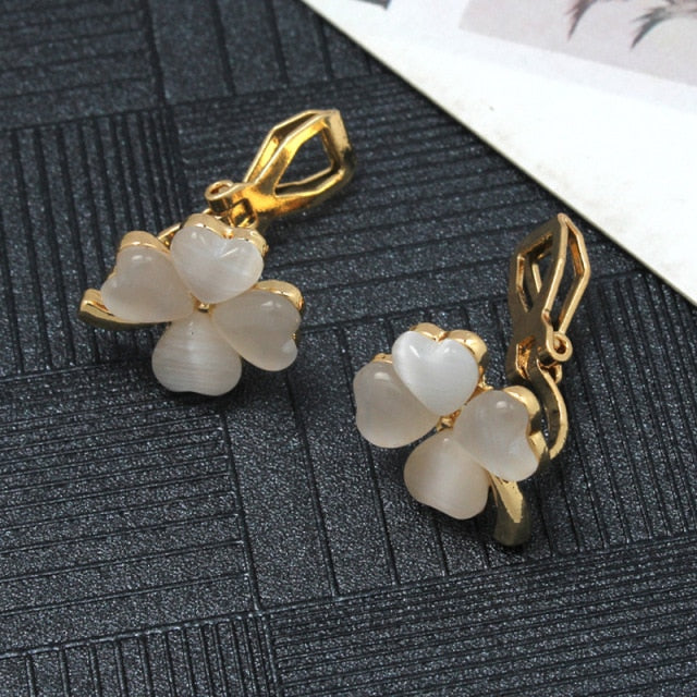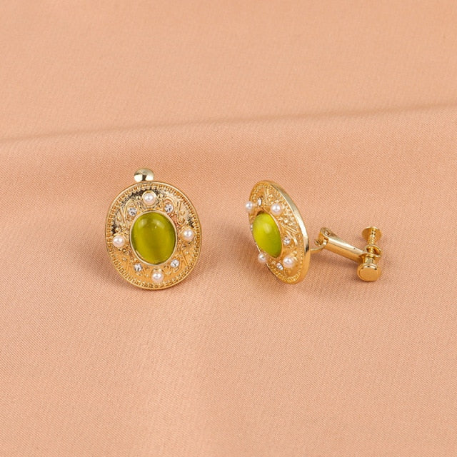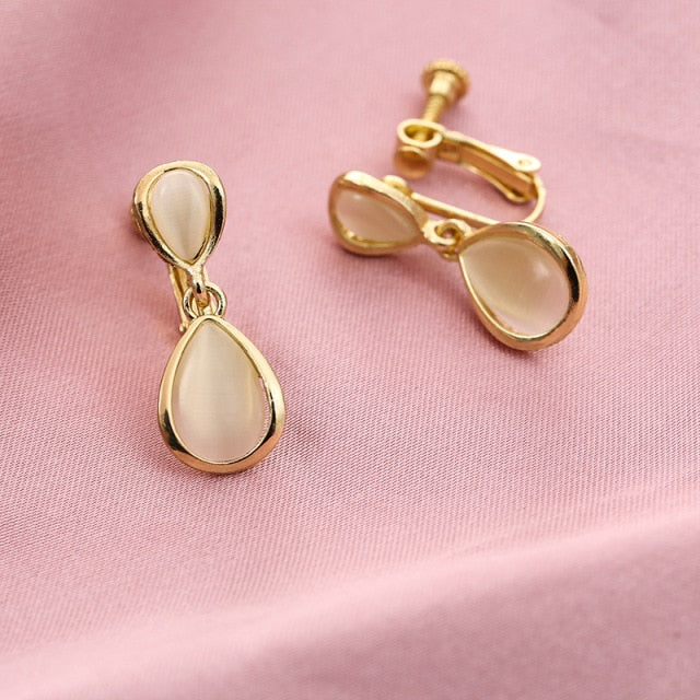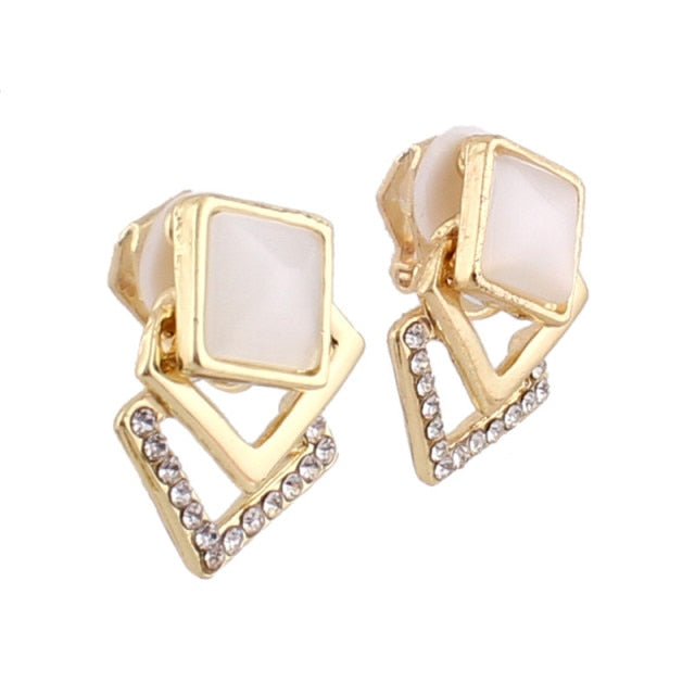 Fashion Earrings- Gold Color Stone Rhinestone Geometric Clip on Earrings for Women Popular Without Pierced Earrings Charm Jewelry