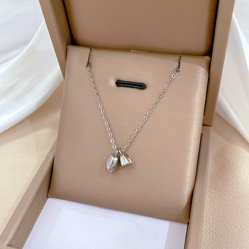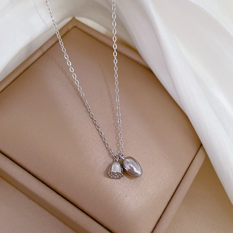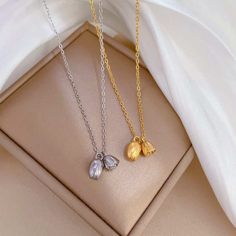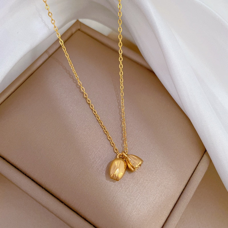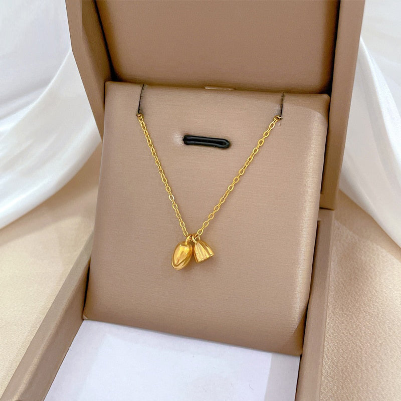 585 Gold Jewelry-316L Stainless Steel Gold Color Temperament Lotus Shaped Pendant Necklace For Women Girls Clavicle Chain Party Jewelry