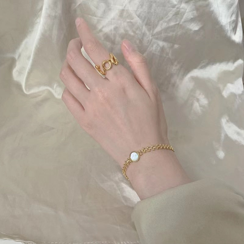 Gold Color Wheat Ear Shape Heart Round Shell Chain Bangle Bracelet for Women