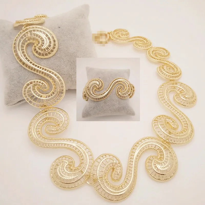 Jewelry set- Kingdom Ma Gold Color Zinc Alloy Jewelry Set For Women Wedding Fashion Necklace Bracelet Sets Dress Accessories