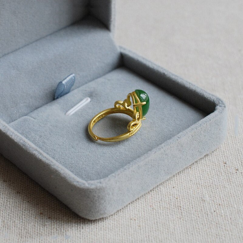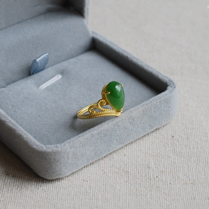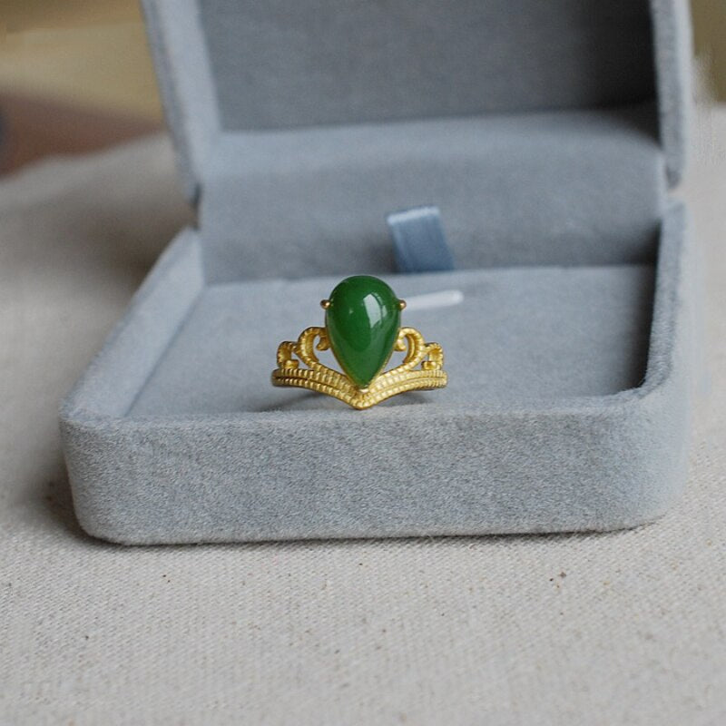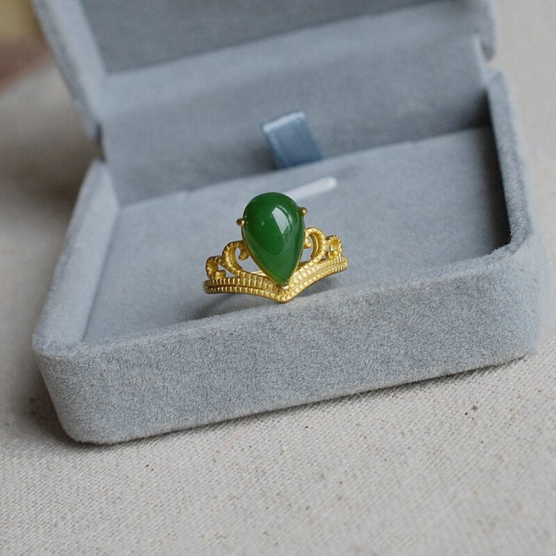 Cocktail Ring-New court style Vintage design Ancient gold craftsmanship Crown inlaid natural water drop chalcedony rings for women jewelry