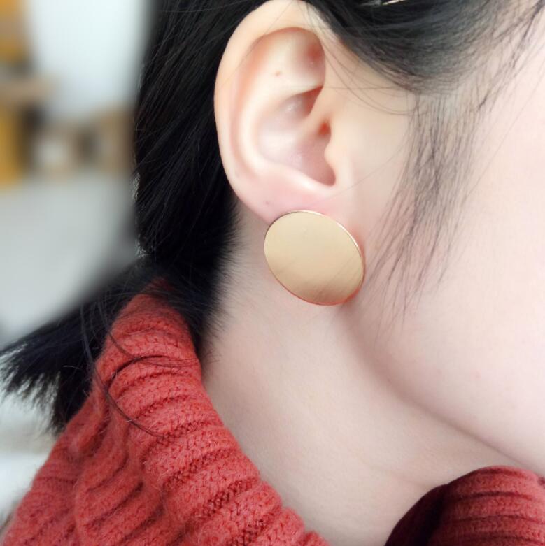 Fashion Earrings-NEW Gold Glossy Round clip earrings without piercing Simple Style Ears Clear Circle Charm Earrings For Women