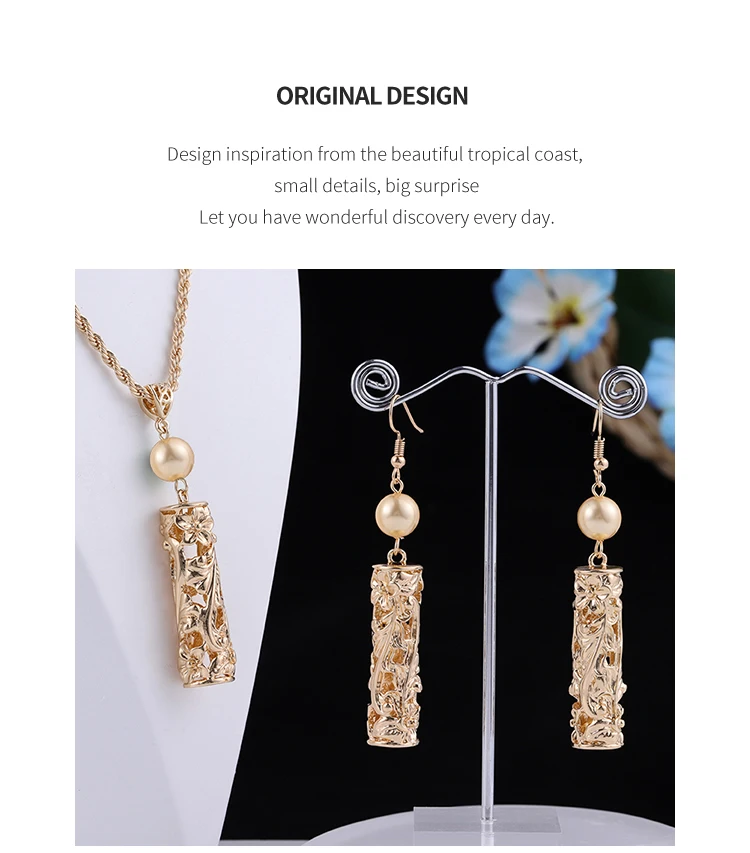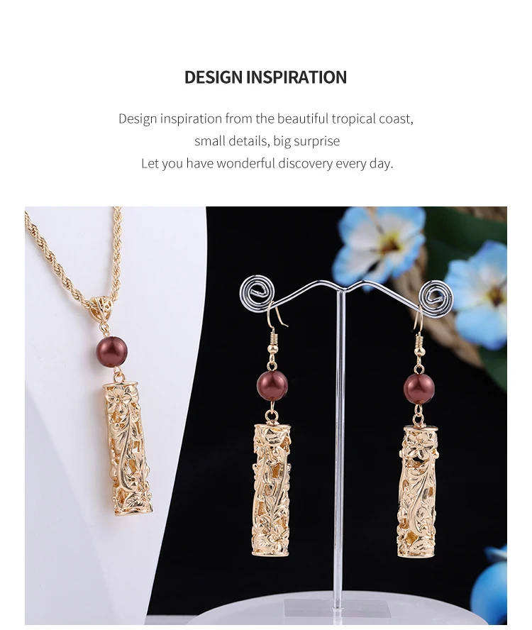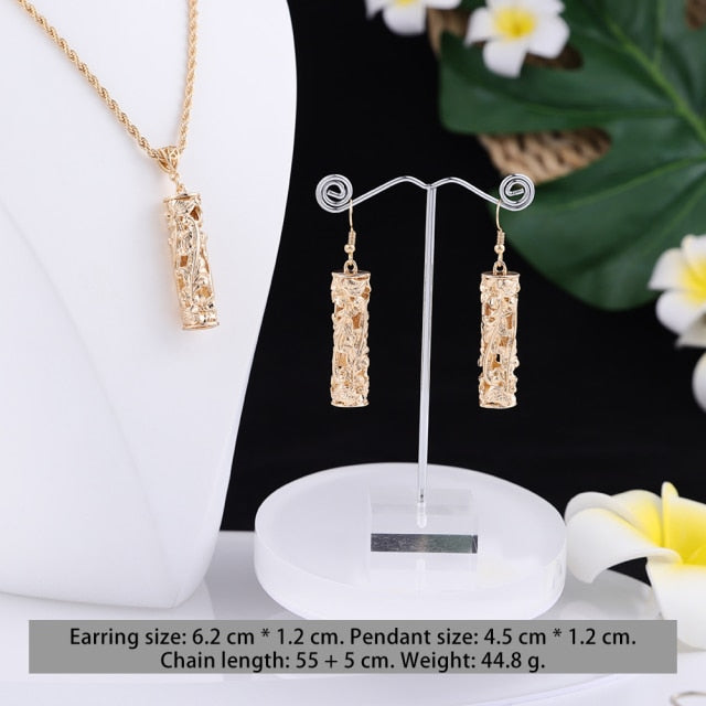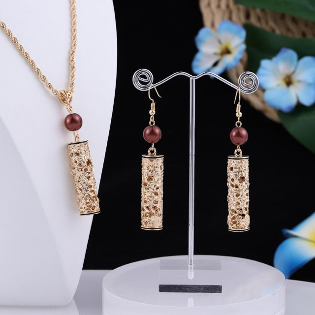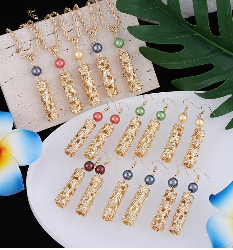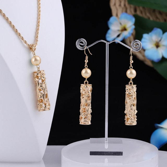 Cring Coco Hot Sale Earrings Necklace Set Hawaiian Polynesian Samoa Gold Hollow out Pearl Pendant Necklace Jewelry Set for Women