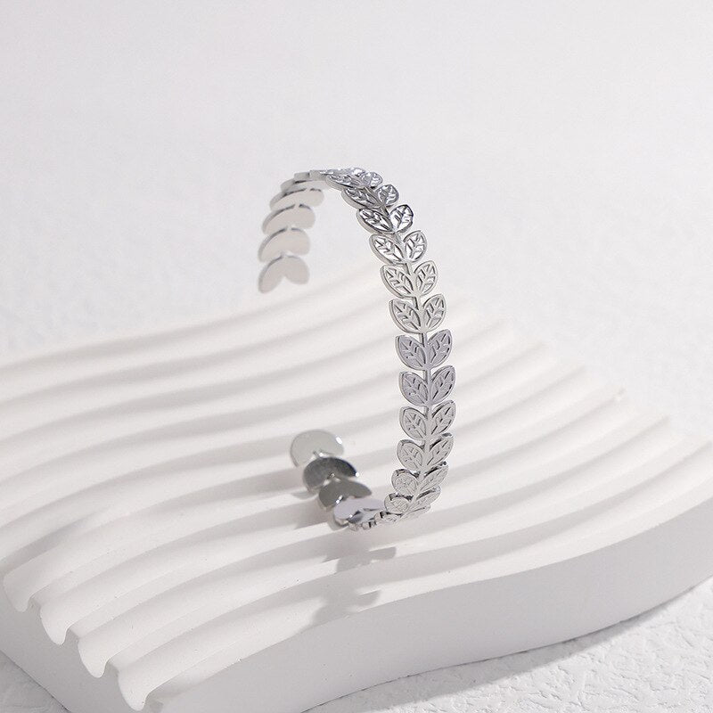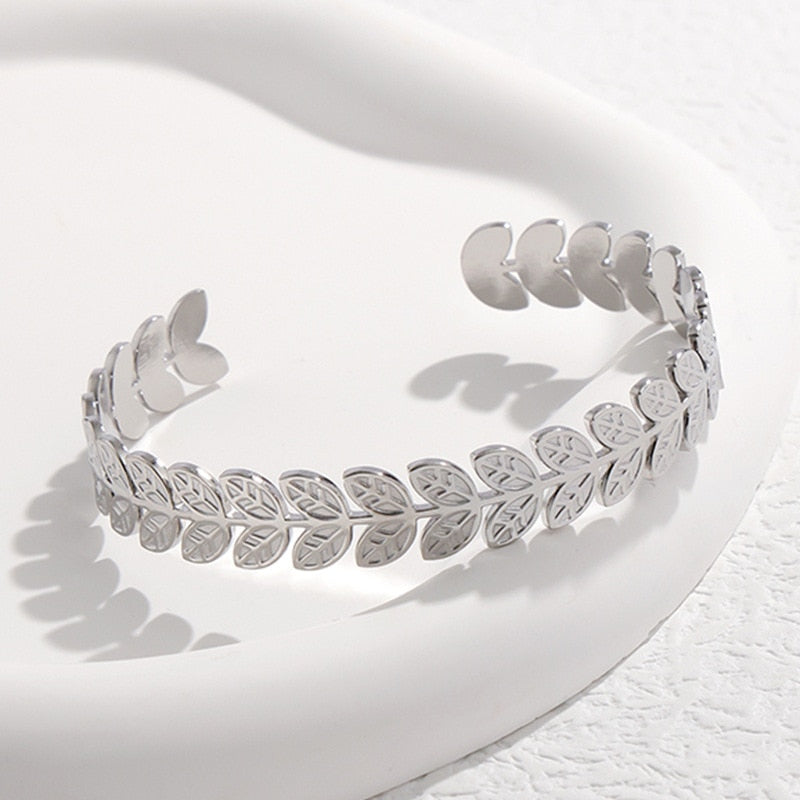 585 Gold Jewelry-316L Stainless Steel Gold Plated Adjustable Bracelet Creative Leaf Open Bangle For Women No Fade Wearable For Bathing