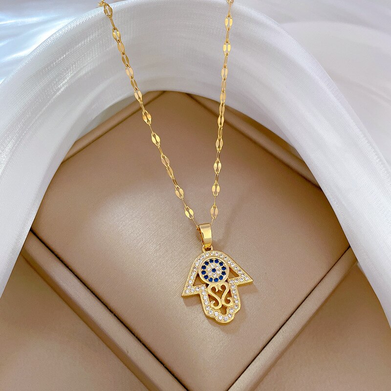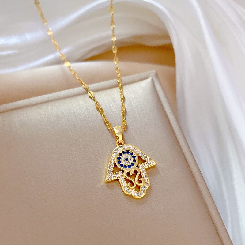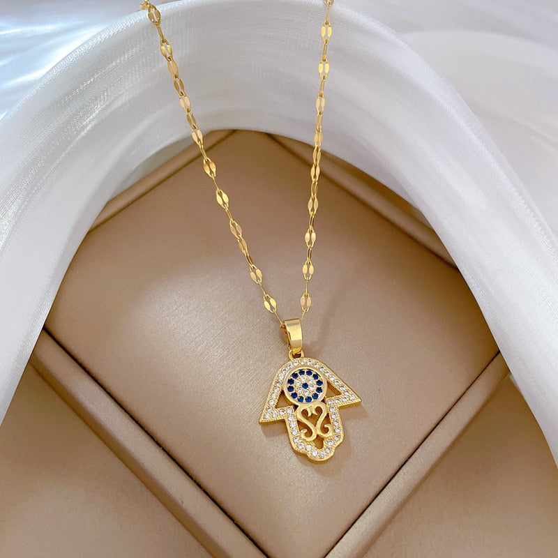 585 Gold Jewelry-316L Stainless Steel Gold Plated Blue Evil Eye Charms Necklace For Women Girl Turkish Zircon Eye Pendants Fashion Necklace