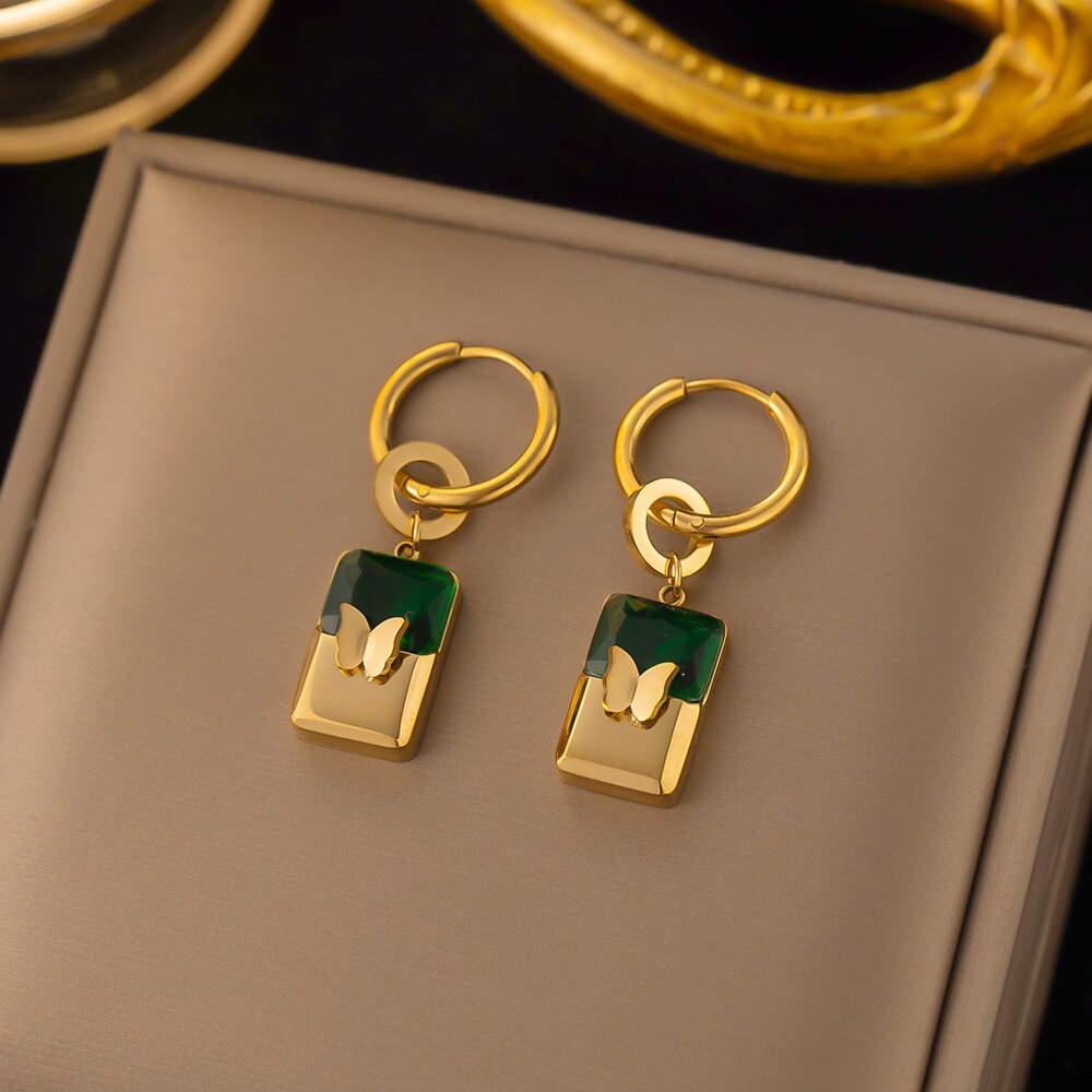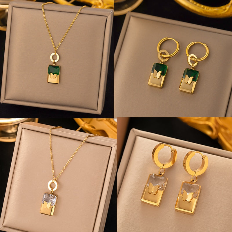 585 Gold Jewelry-316L Stainless Steel Gold Plated Bohemian Ethnic Transparent Zircon Butterfly Necklace Earrings Women Luxury Jewelry Set
