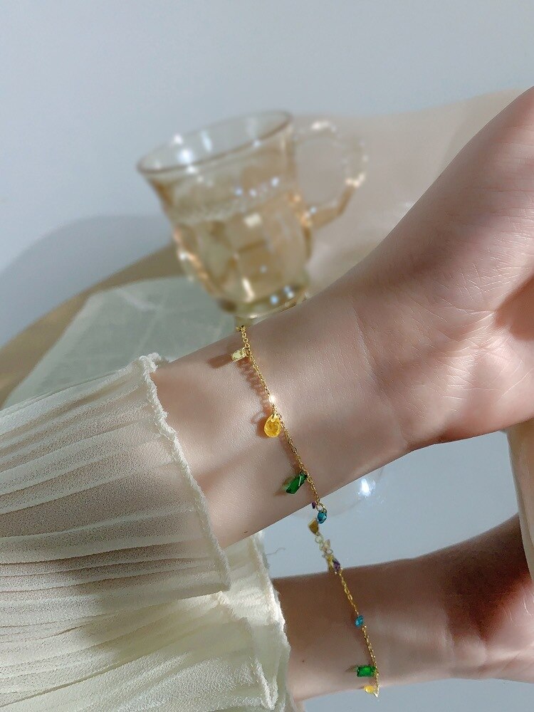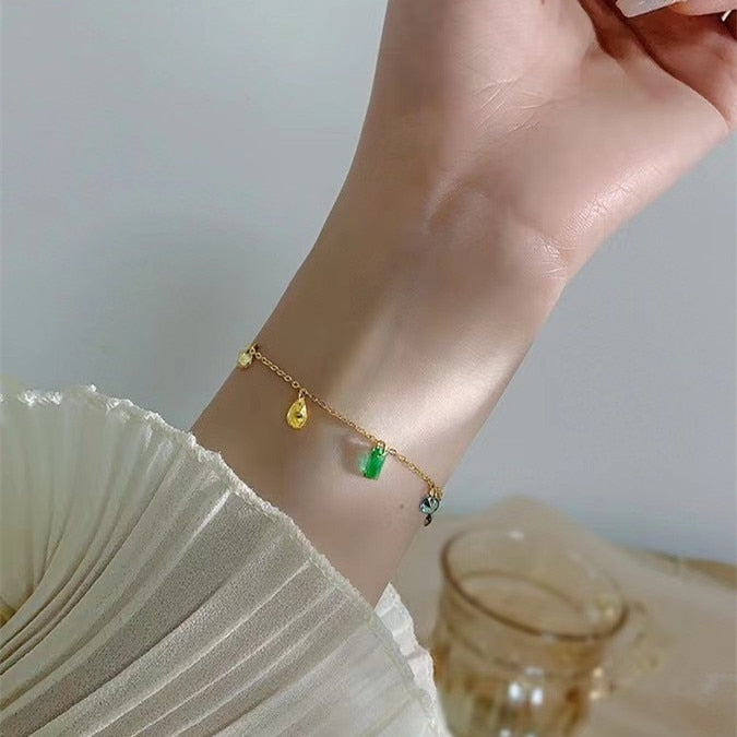Gold Plated Bracelet Korean Simple Colorful Rhinestone Tassel Pendant Bangle For Women
