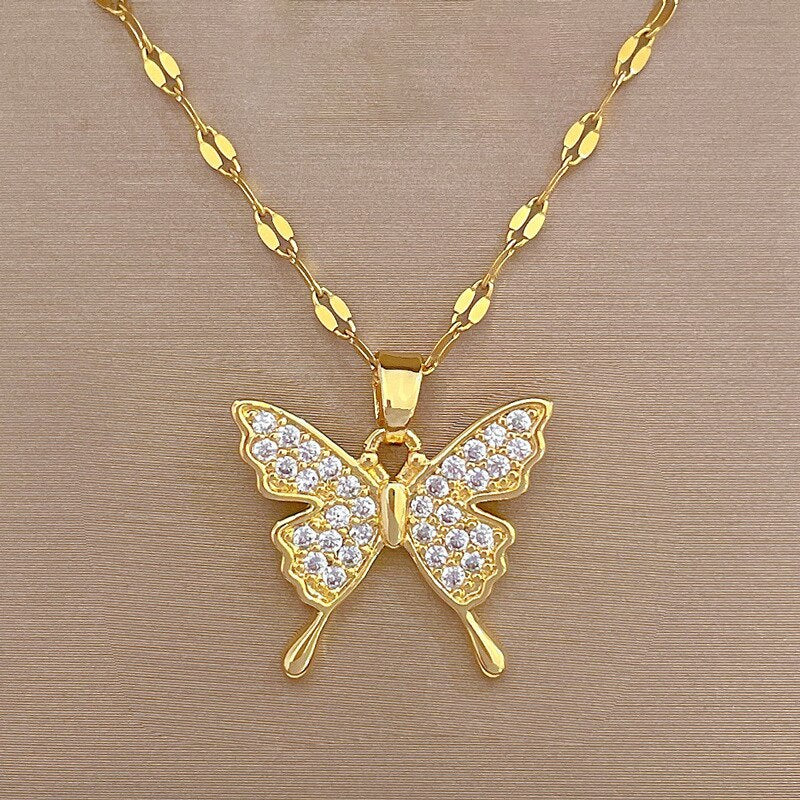 Men's Watches-316L Stainless Steel Gold Plated Charm Rhinestone Butterfly Pendant Neckalce For Women Girls Wedding Party Elegant Jewelry