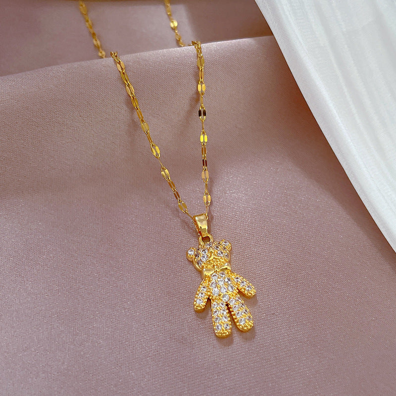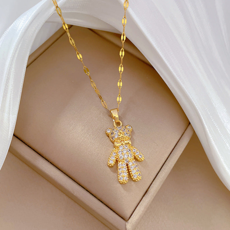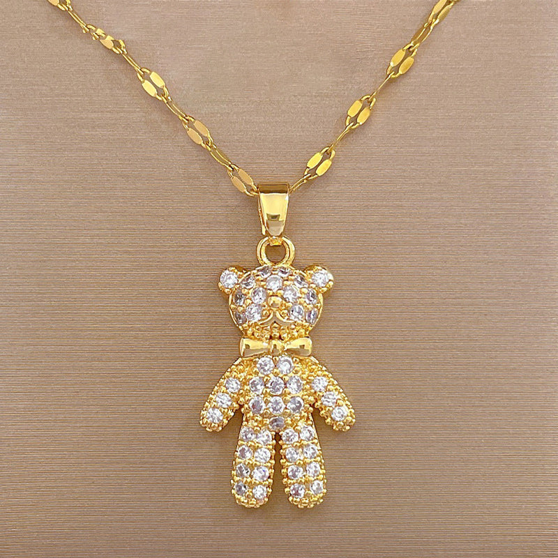 585 Gold Jewelry-316L Stainless Steel Gold Plated Charming Cute Bear Luxry Zirconia Pendant Neckalce For Women Princess Birthday Gift