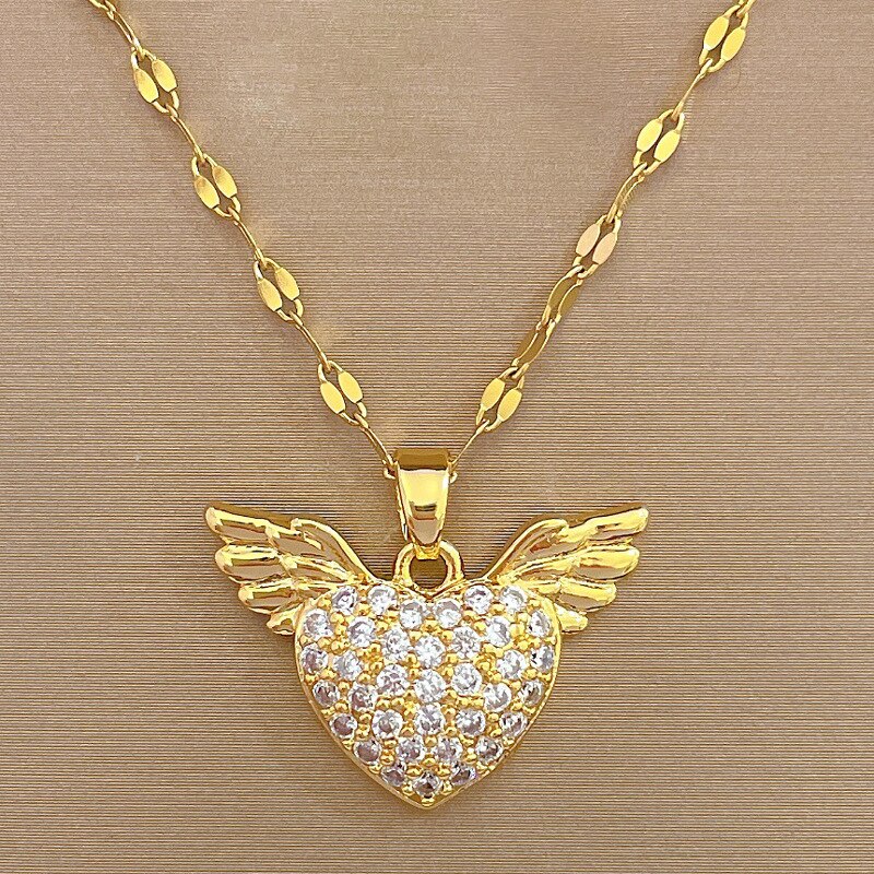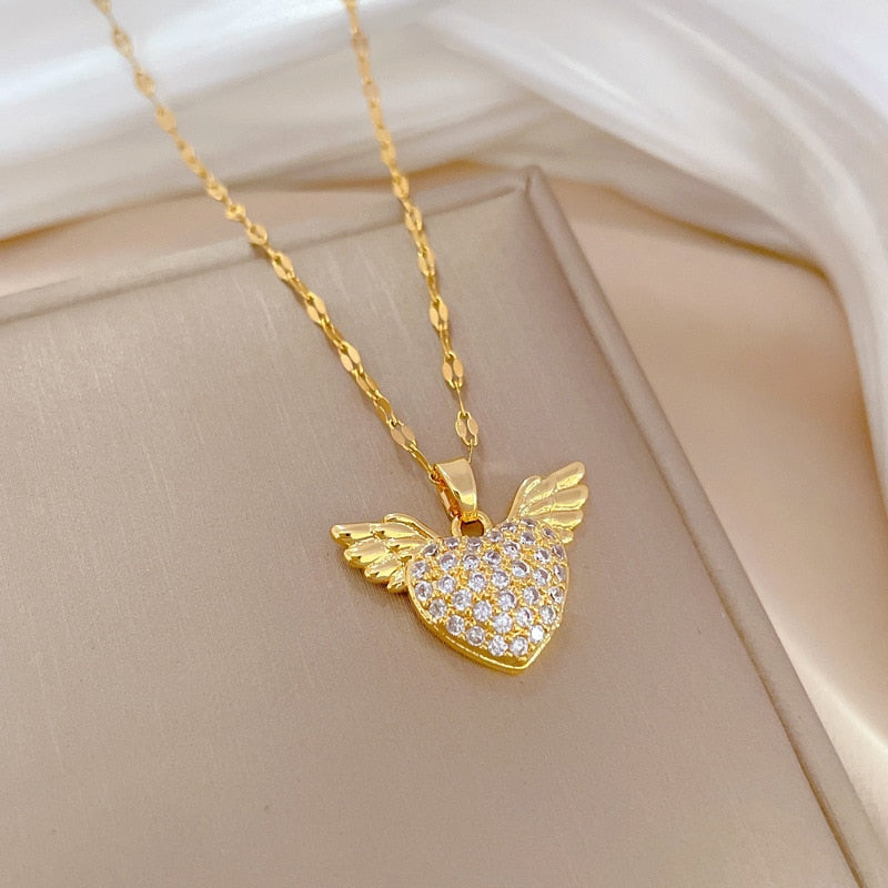 585 Gold Jewelry-316L Stainless Steel Gold Plated Cute Angel Wing Heart Pendant Neckalce For Women Girls Party Fashion Luxury Jewelry