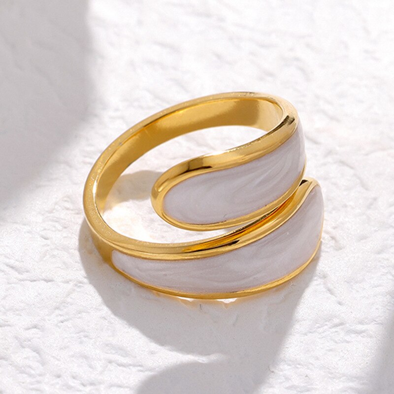 585 Gold Jewelry-316L Stainless Steel Gold Plated Double Layer Oil Dripping Adjustable Open Finger Ring For Women Punk No Fading Finger Ring