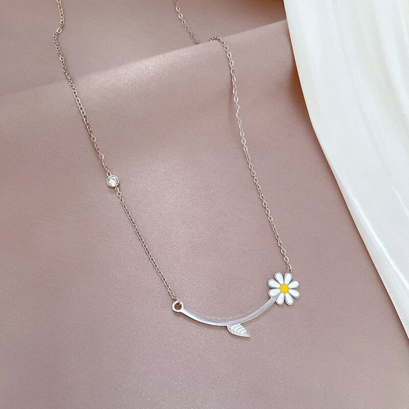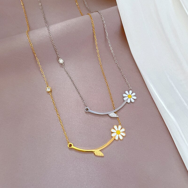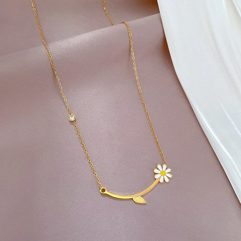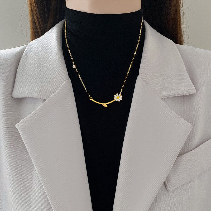 585 Gold Jewelry-316L Stainless Steel Gold Plated Elegant Leaves Daisy Flower Pendant Neckalce For Women Girls Temperament Luxury Jewelry