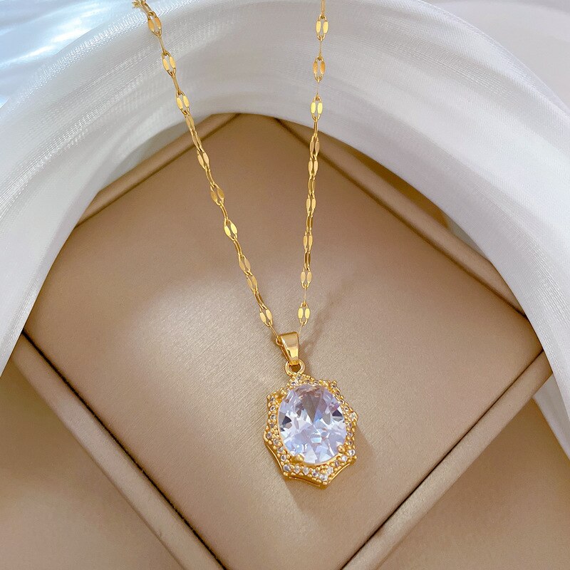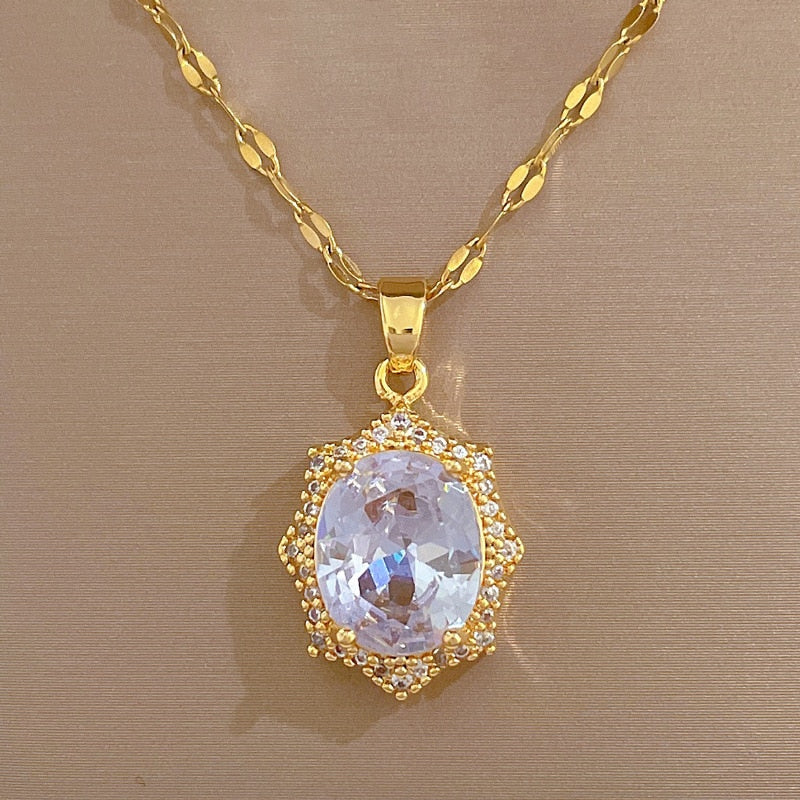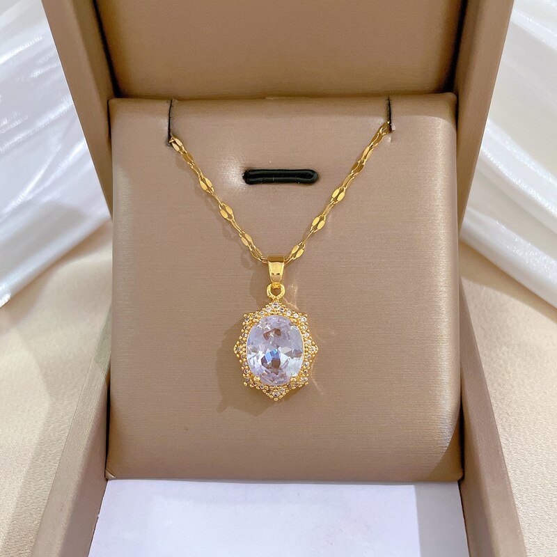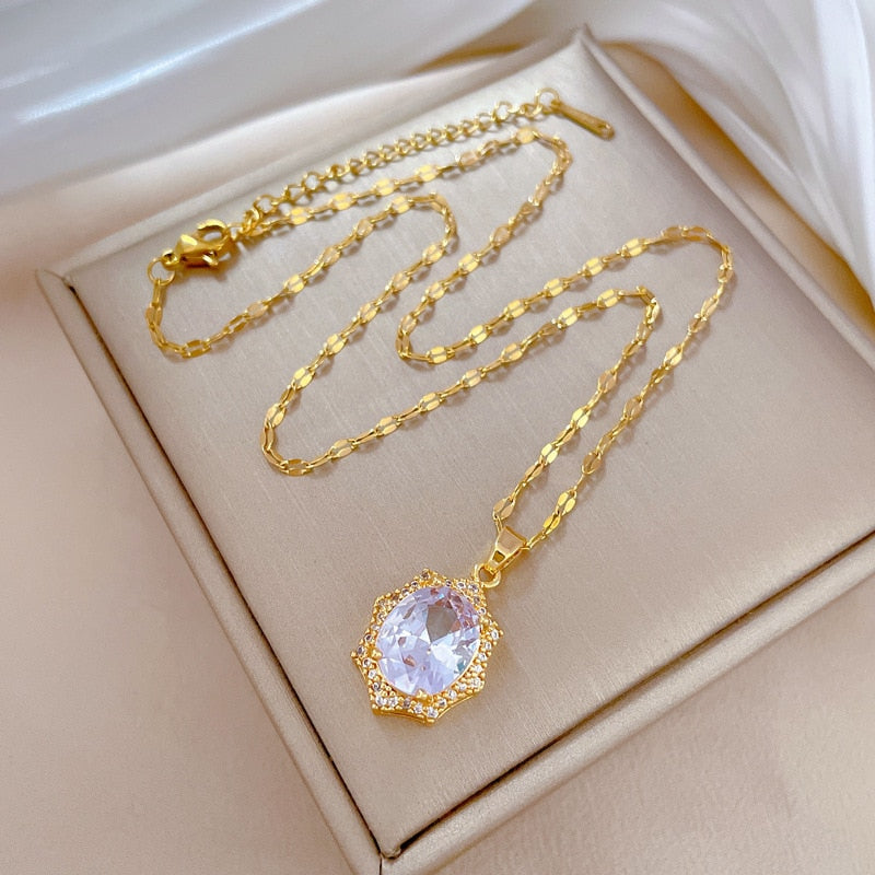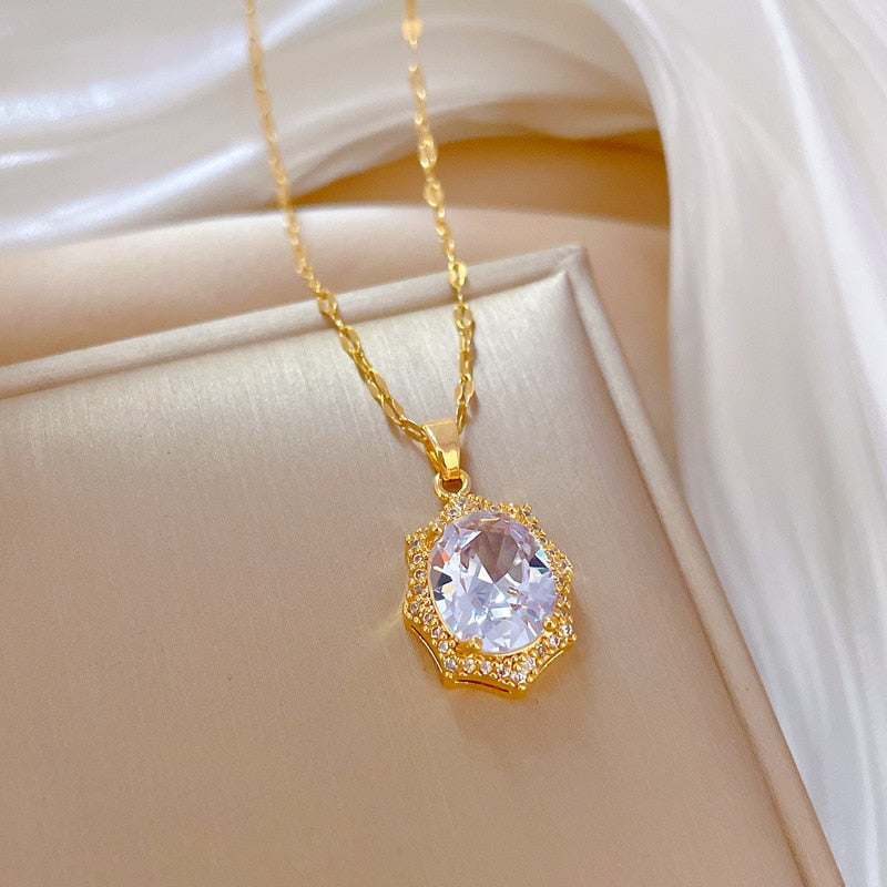 585 Gold Jewelry-316L Stainless Steel Gold Plated Elegant Rhombus Crystal Pendant Fashion Pendant Necklace for Women Wedding Party Jewelry