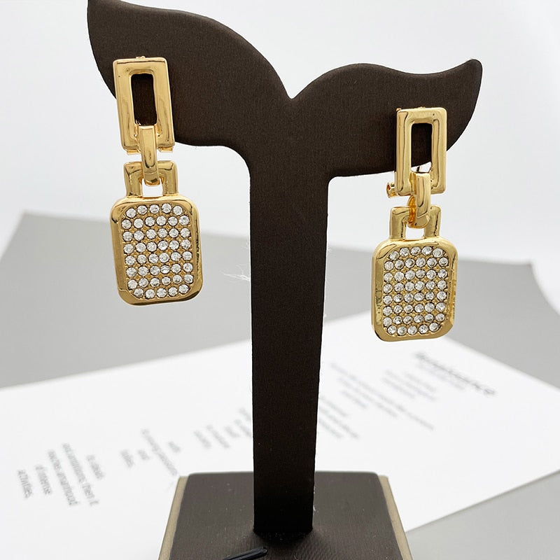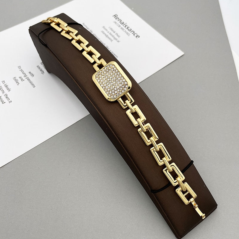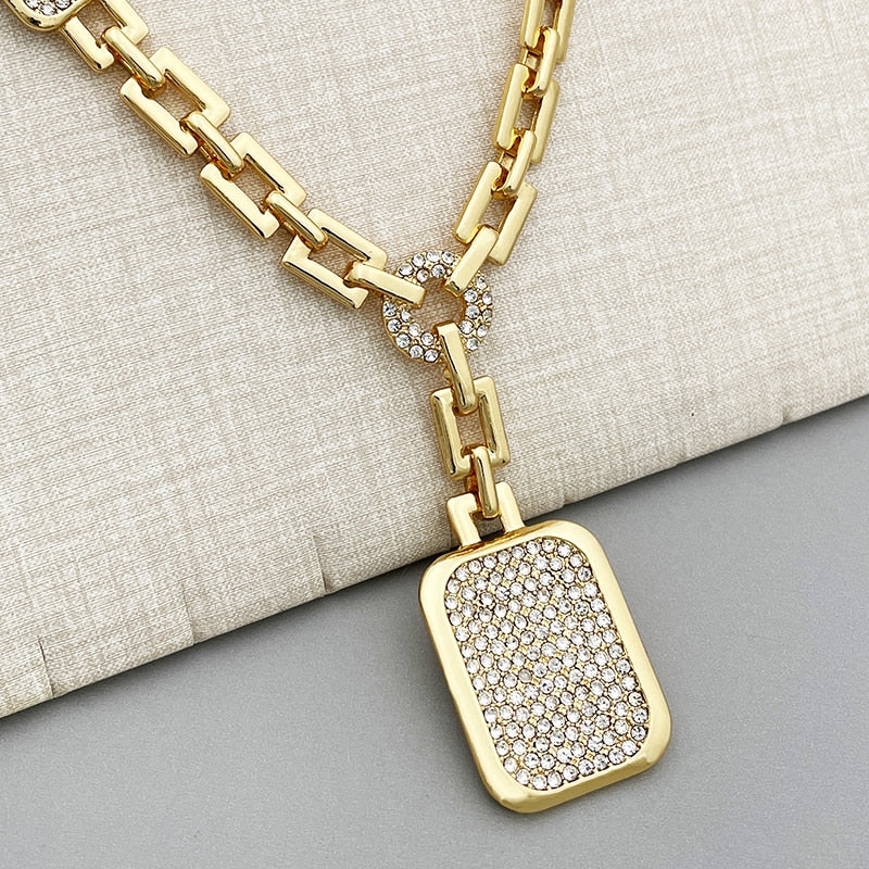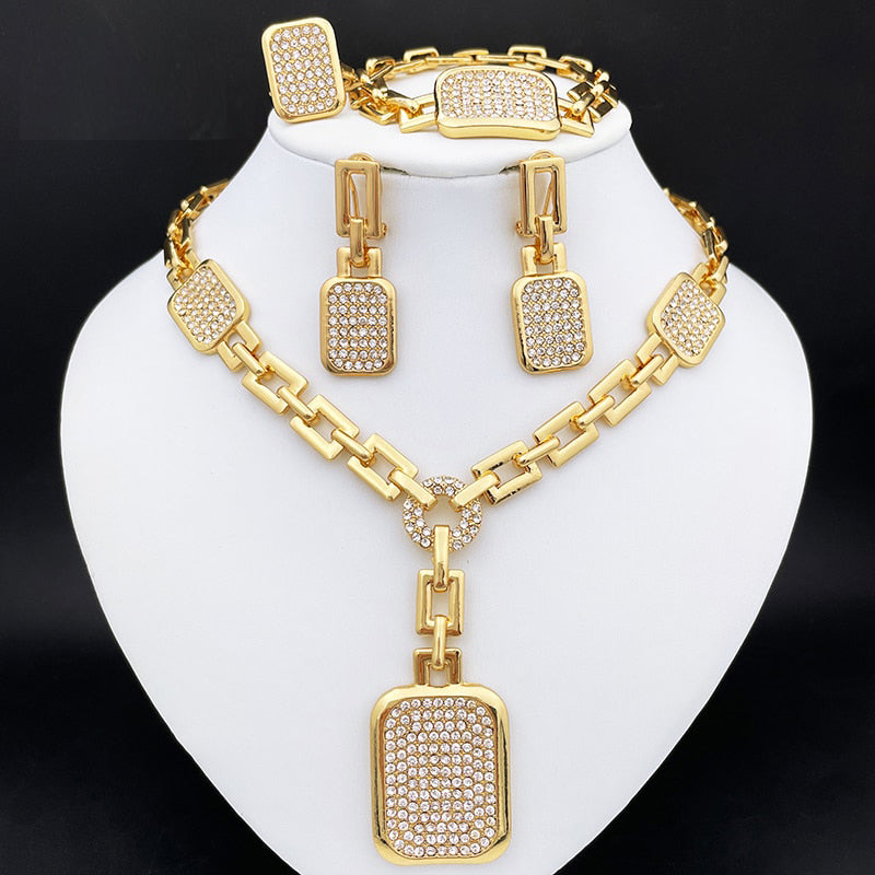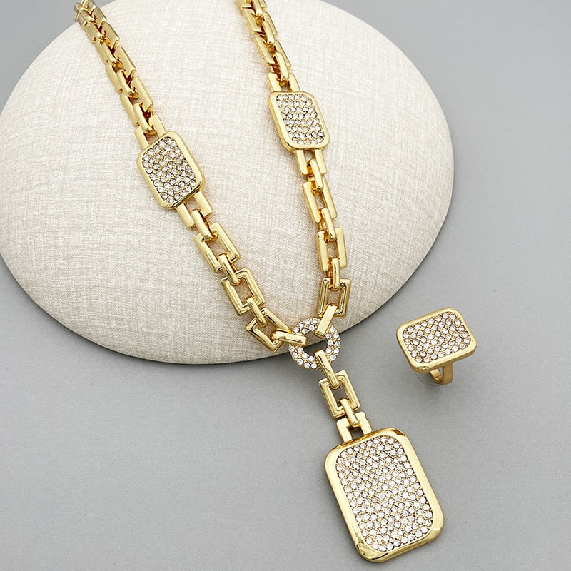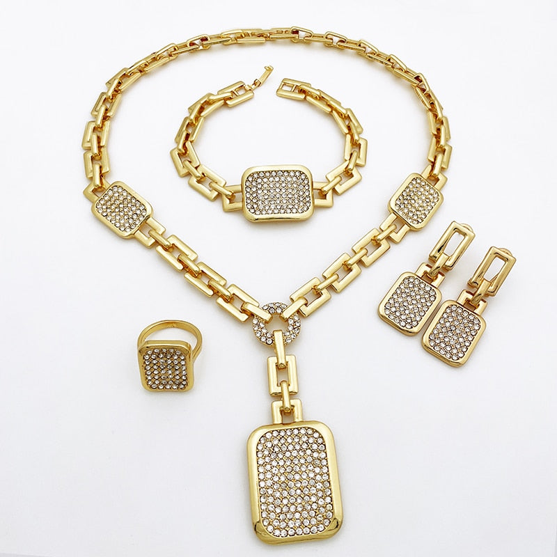 Gold Plated Fine Jewelry Set African Women Pendant Necklace Square Earrings Big Bracelet