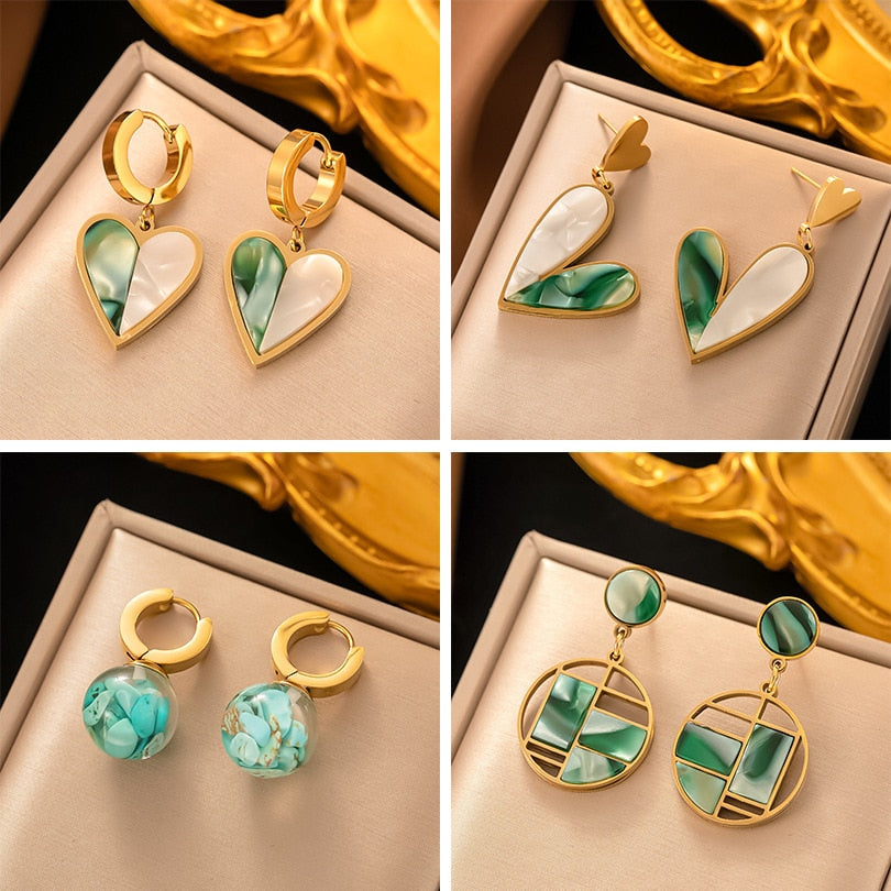 585 Gold Jewelry-316L Stainless Steel Gold Plated Gorgeous Glass Ball Heart Hoop Earrings For Women Elegant Dangle Earrings Party Gift